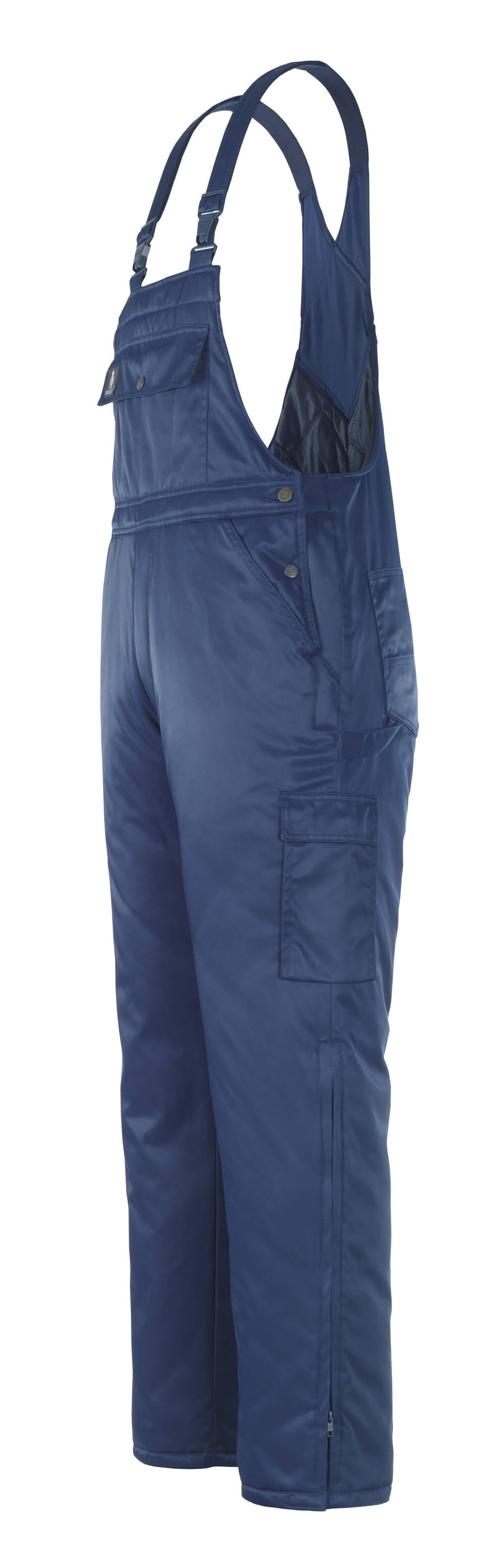 Déperlant(e). Doublure matelassée. Bretelles ajustables en tissu et court ruban élastique très résistant - boucles en plastique. Poche bavette sous rabat fermé par boutons-pression. Taille réglable. Braguette zippée. Poches latérales. Poches arrière renforcées - dont une sous rabat et avec fermeture par bande auto-agrippante. Patte-marteau. Poche cuisse sous rabat fermée par bande auto-agrippante. Poche mètre pliant renforcée. Zip sous rabat coupe-vent sur le côté extérieur des jambes. Bandes auto-agrippantes aux chevilles.