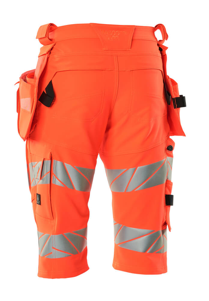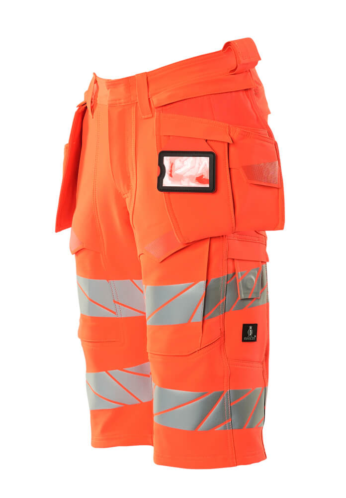 Tissu fluorescent avec bandes rétroréfléchissantes. Offre une finition hydrofuge. Tissu ultimate stretch de poids léger et résistant. Coutures doubles sur les jambes et dans l'entrejambe. Fermeture bouton dissimulée. Poches flottantes amovibles. Poche flottante interne fermeture avec boutons-pression. Poche flottante avec poche téléphone doublée, fermeture aimantée et porte-badge intégré. Porte-badge amovible. Poches flottantes avec renforts en Kevlar® et CORDURA®. Passants de ceinture. Patte-outils de chaque côté de la taille. Braguette zippée. Poches latérales. Poches arrière renforcées et rabat. Patte-marteau cachée de chaque côté. Bouton (amovible) où fixer un porte-couteau. Poche mètre pliant renforcée en Kevlar®. Poches à rabat à l'avant des cuisses. Poche cuisse avec poche téléphone doublée et fermeture aimantée.