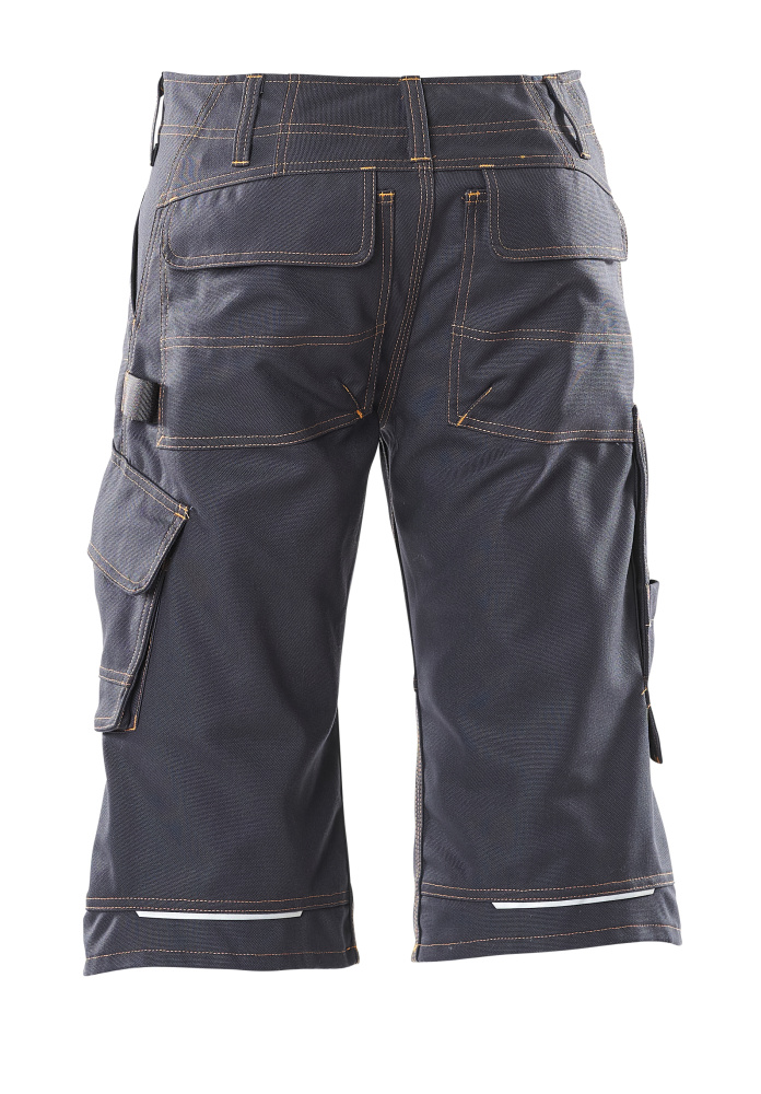 Coutures doubles sur les jambes et triples dans l'entrejambe. Taille basse et ceinture façonnée. Jambes ergonomiques. Passants de ceinture. Braguette zippée. Poches latérales. Poches arrière renforcées, sous rabat avec fermeture par bande auto-agrippante. Patte-marteau réglable. Poche cuisse renforcée, avec poche téléphone et rabat avec fermeture par bande auto-agrippante. Poche pour mètre pliant renforcée, avec une petite poche superposée. Poche stylo. Coutures contrastées orange. Effets rétroréfléchissants.