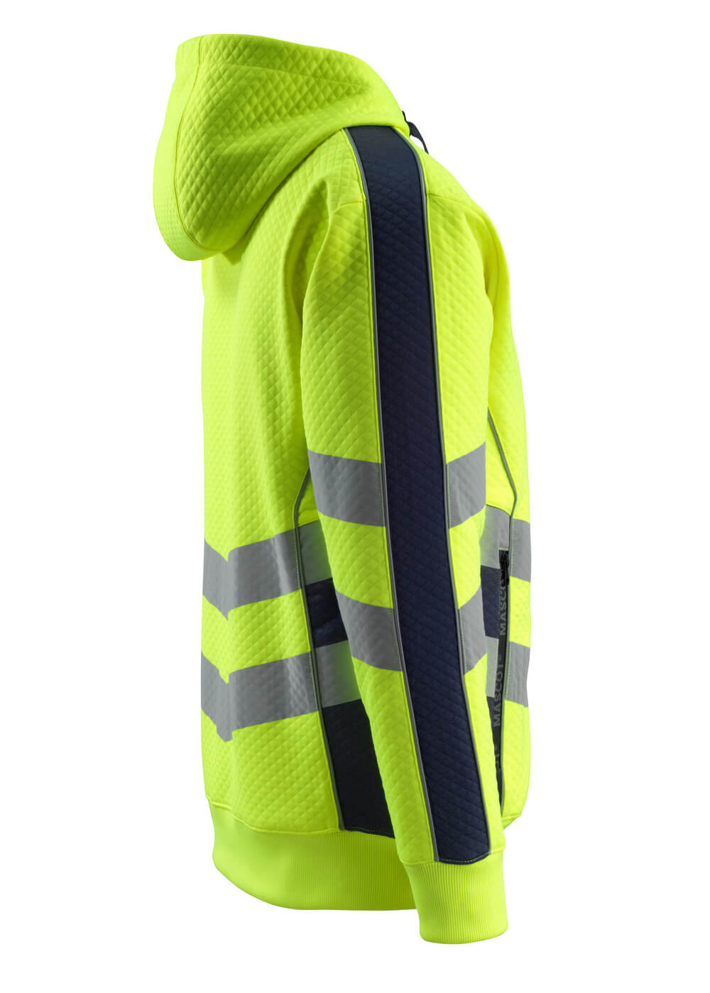 Premium. Fluorescent(e) avec bandes rétroréfléchissantes transversales en biais. Bicolore. Coupe moderne. Intérieur confortable en coton et extérieur en polyester résistant. Bandes rétroréfléchissantes stretch. Capuche avec cordon de serrage. Zip intégral. Poches latérales zippées. Taille et poignets en maille côtelée.