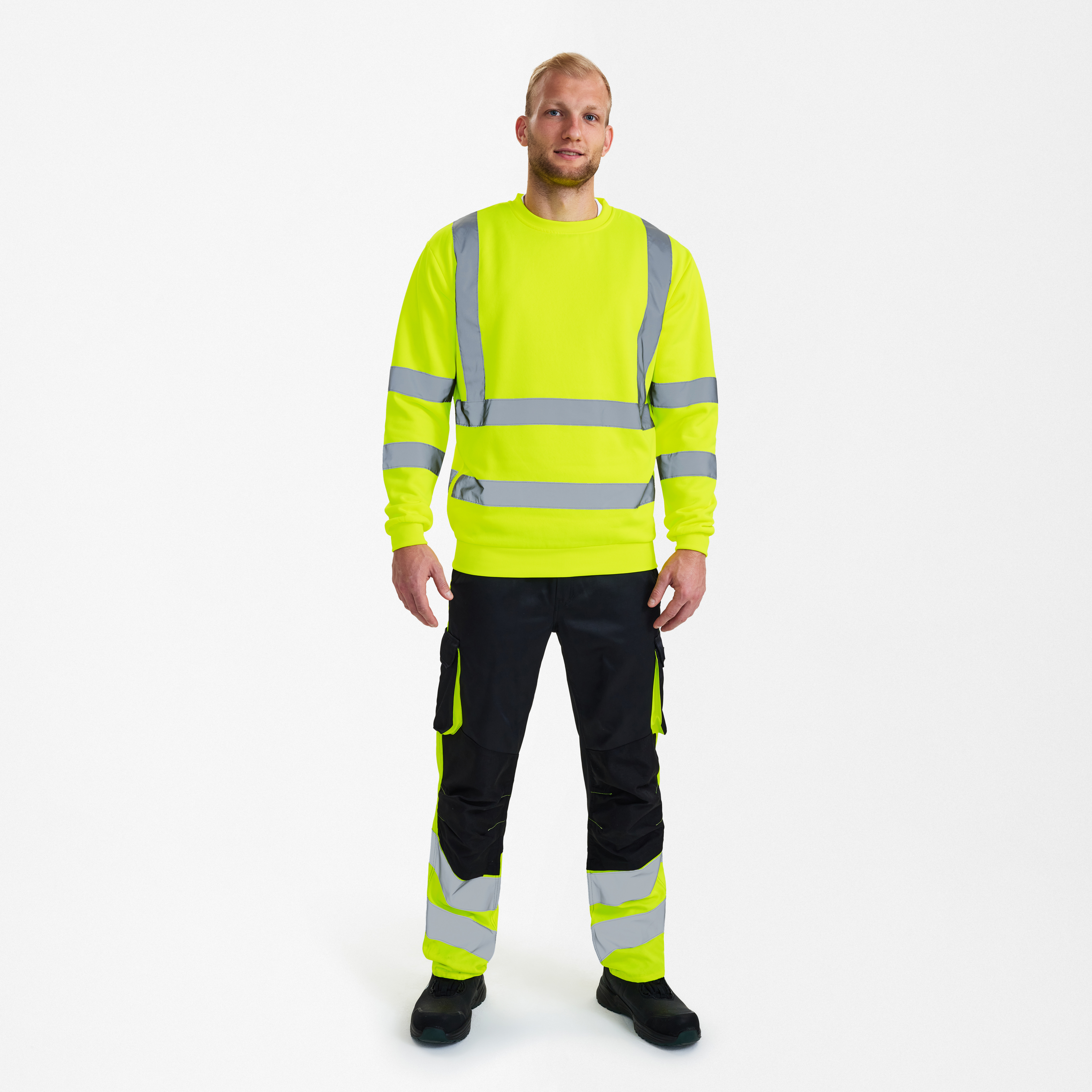 Ce sweat-shirt fluorescent est à la fois joli et fonctionnel. Sa face intérieure brossée le rend doux et confortable. L'encolure, les poignets et l'ourlet sont côtelés. Des bandes réfléchissantes sont cousues sur les épaules, ainsi qu'autour des bras et de la taille. Classe de vêtement 3. Testé après 25 lavages.