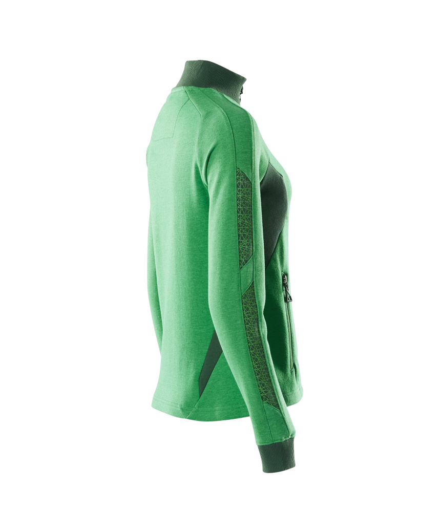 Premium Performance. Coupe femme. Qualité robuste. Molleton gratté à l’intérieur. Zip intégral. Poches latérales zippées. Encolure et poignets en maille côtelée. Bande de renfort sur les coutures au niveau de la nuque. Impressions sur certaines parties du produit.