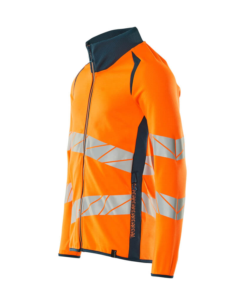Premium. Fluorescent(e) avec bandes rétroréfléchissantes transversales en biais. Bicolore. Coupe moderne. Intérieur confortable en coton et polyester stretch résistant à l'extérieur. Motif jacquard carré. Bandes rétroréfléchissantes stretch. Zip intégral. Poches latérales zippées. Poches intérieures. Encolure en maille côtelée. Pièce de renfort au niveau de la nuque. Bande élastique au niveau des poignets et du bord inférieur.