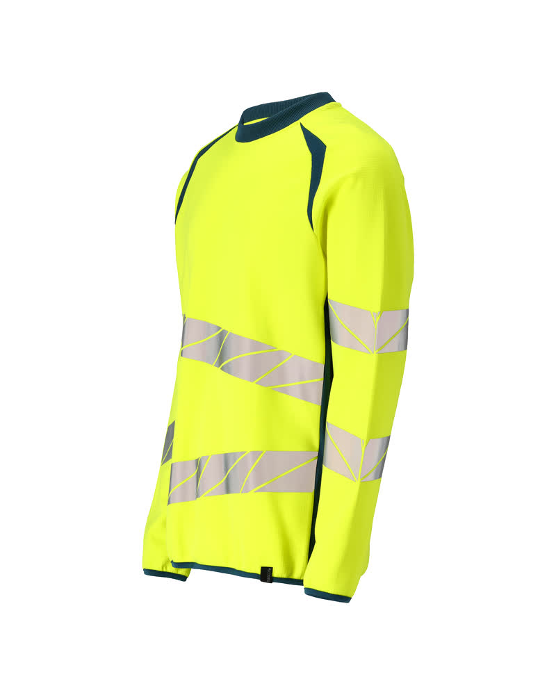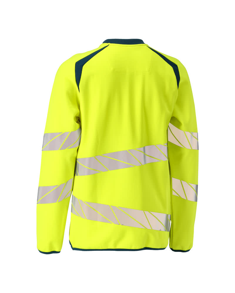 Premium. Fluorescent(e) avec bandes rétroréfléchissantes transversales en biais. Bicolore. Coupe moderne. Intérieur confortable en coton et polyester stretch résistant à l'extérieur. Motif jacquard carré. Bandes rétroréfléchissantes stretch. Encolure ronde. Encolure en maille côtelée. Pièce de renfort au niveau de la nuque. Bande de renfort sur les coutures au niveau de la nuque. Bande élastique au niveau des poignets et du bord inférieur.