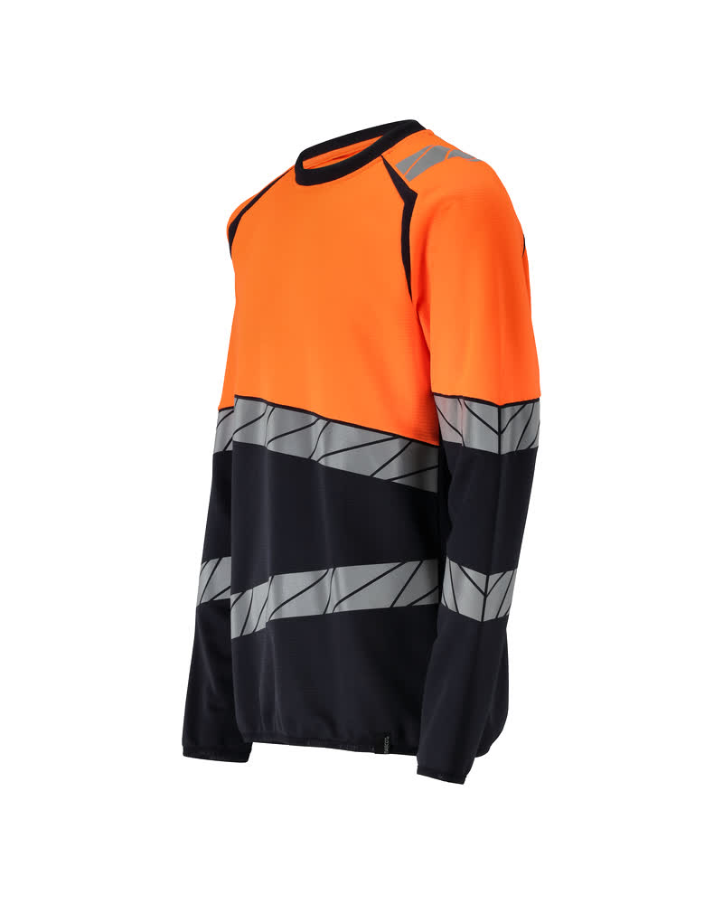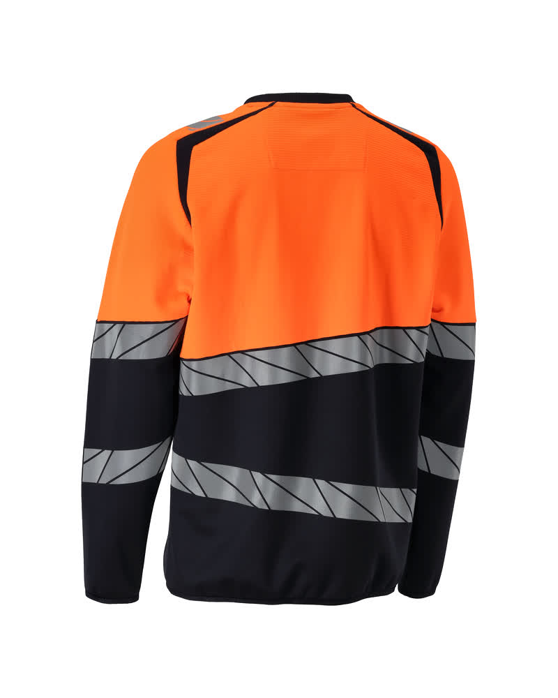 Premium. Fluorescent(e) avec bandes rétroréfléchissantes transversales en biais. Bicolore. Coupe moderne. Intérieur confortable en coton et polyester stretch résistant à l'extérieur. Motif jacquard carré. Bandes rétroréfléchissantes stretch. Encolure ronde. Encolure en maille côtelée. Pièce de renfort au niveau de la nuque. Bande de renfort sur les coutures au niveau de la nuque. Bande élastique au niveau des poignets et du bord inférieur.