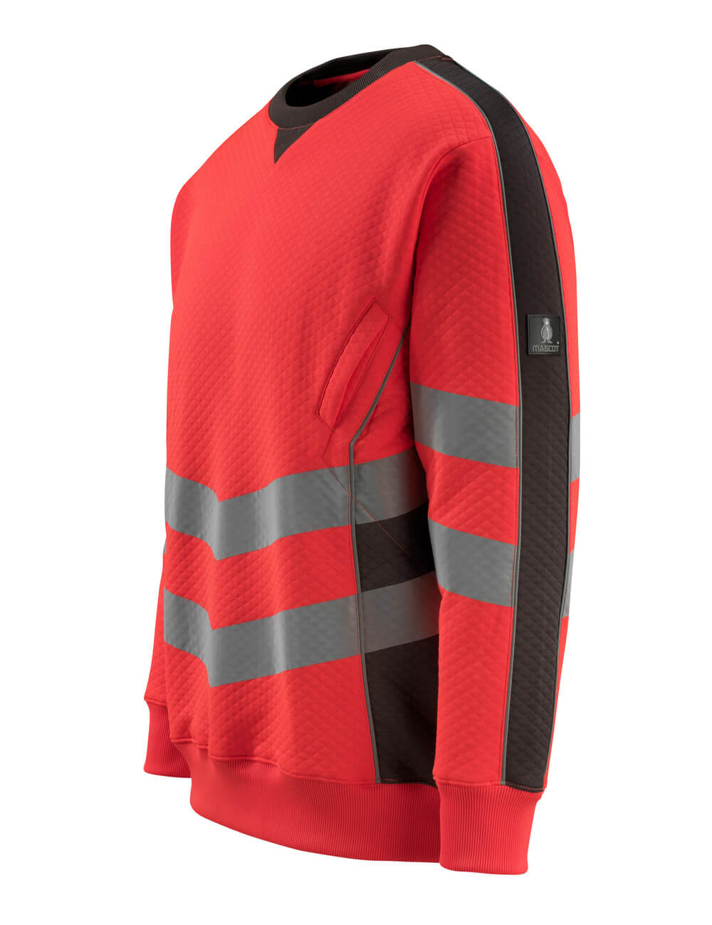Premium. Fluorescent(e) avec bandes rétroréfléchissantes transversales en biais. Bicolore. Coupe moderne. Intérieur confortable en coton et extérieur en polyester résistant. Bandes rétroréfléchissantes stretch. Col, taille et poignets en maille côtelée. Poche latérale avec rabat coupe-vent.