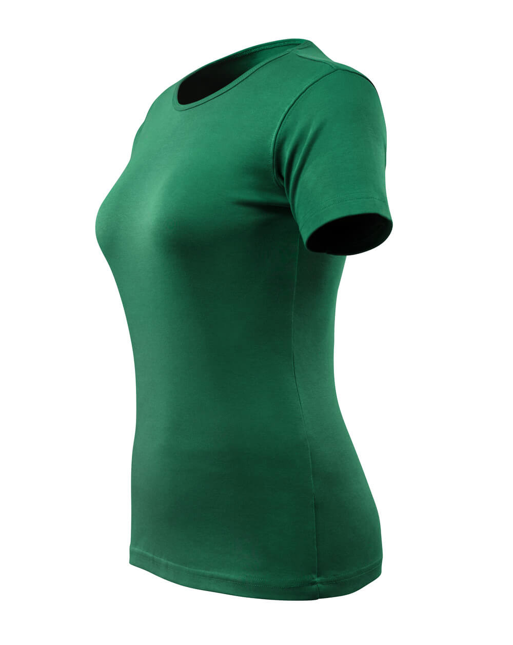Basic. Coupe femme. Encolure ronde. Encolure en maille côtelée. Bande de renfort sur les coutures au niveau de la nuque.