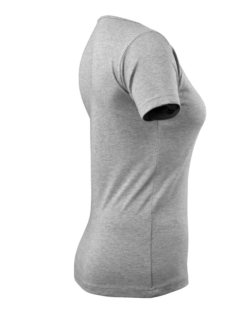 Basic. Coupe femme. Encolure en V. Encolure en maille côtelée. Bande de renfort sur les coutures au niveau de la nuque.