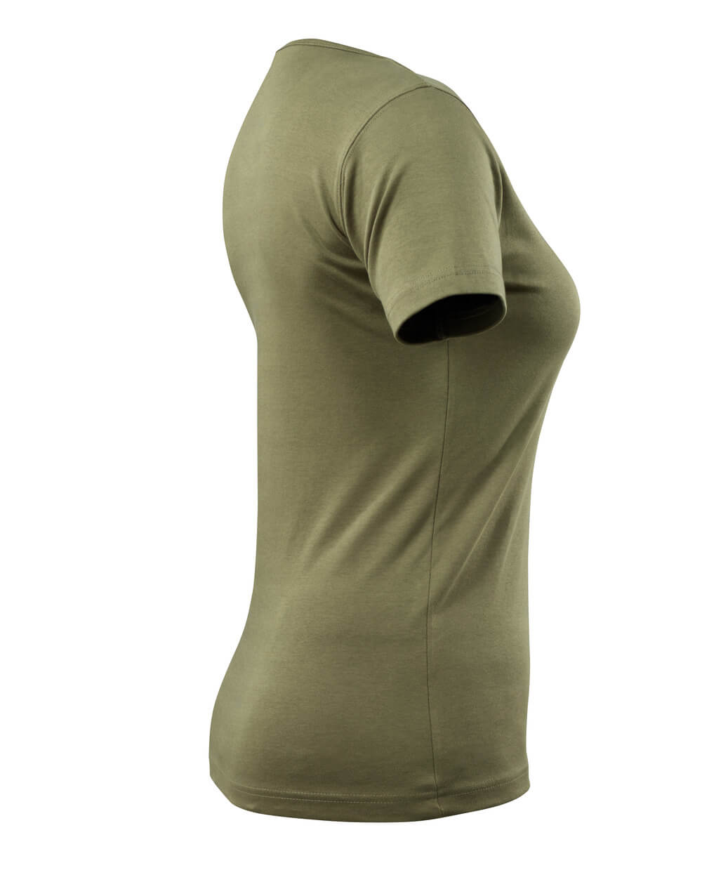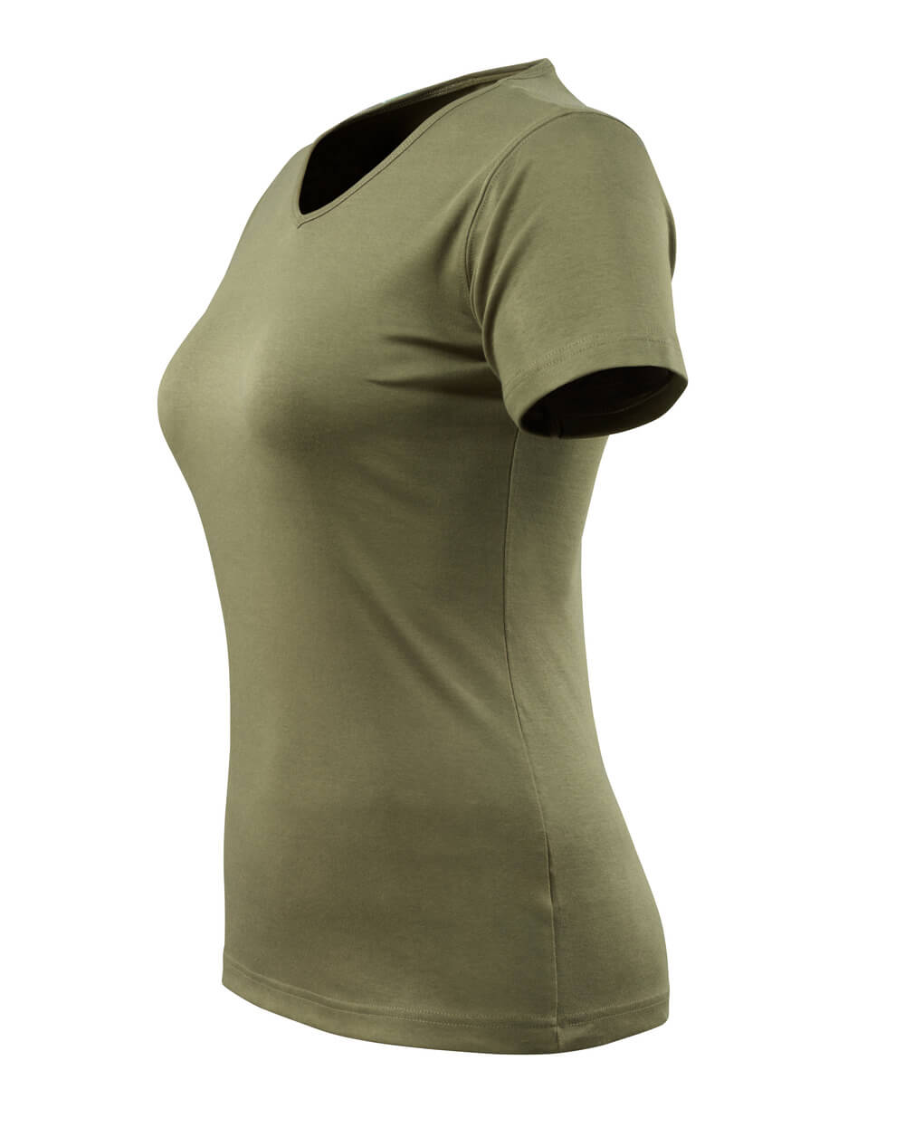 Basic. Coupe femme. Encolure en V. Encolure en maille côtelée. Bande de renfort sur les coutures au niveau de la nuque.