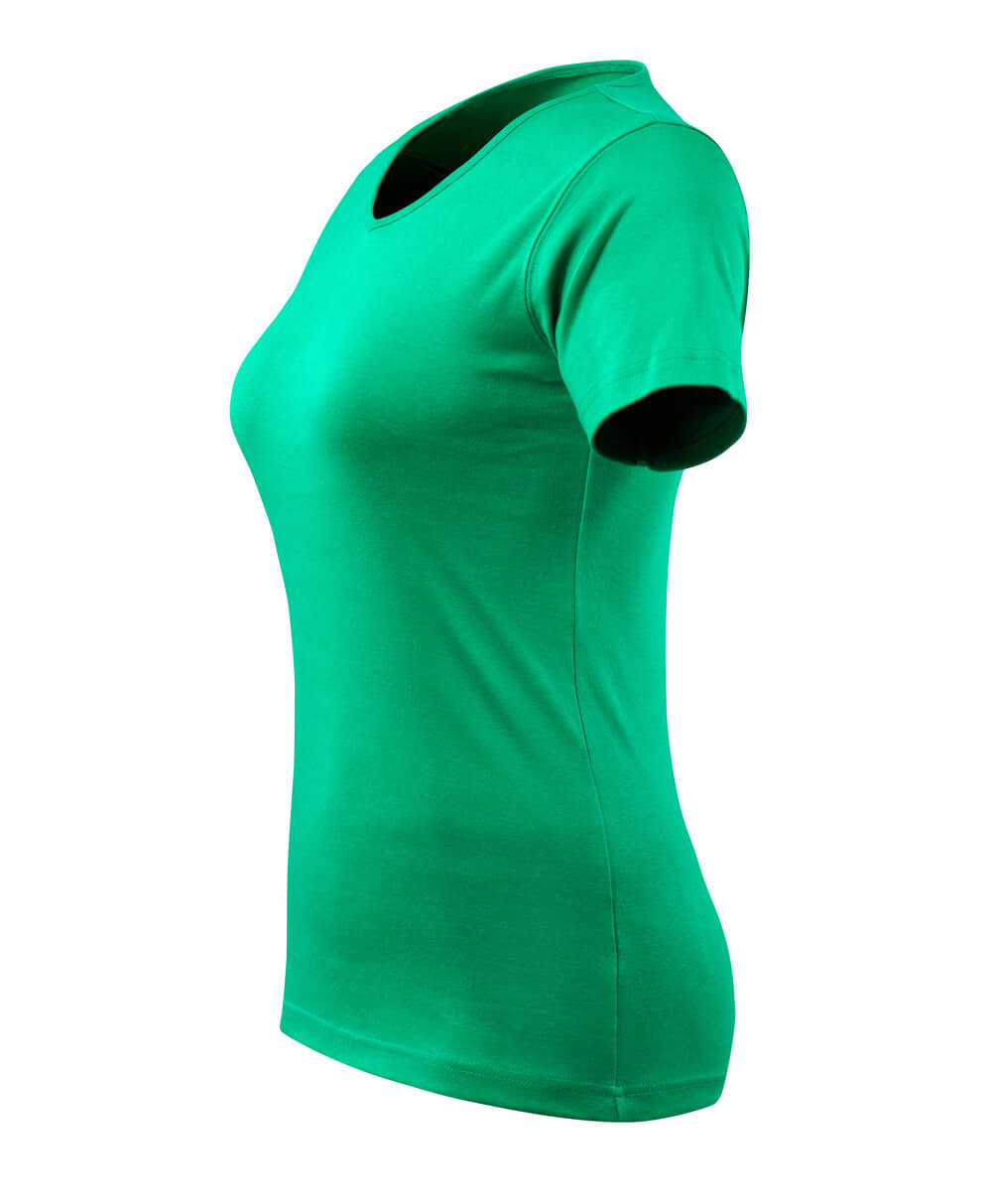 Basic. Coupe femme. Encolure en V. Encolure en maille côtelée. Bande de renfort sur les coutures au niveau de la nuque.