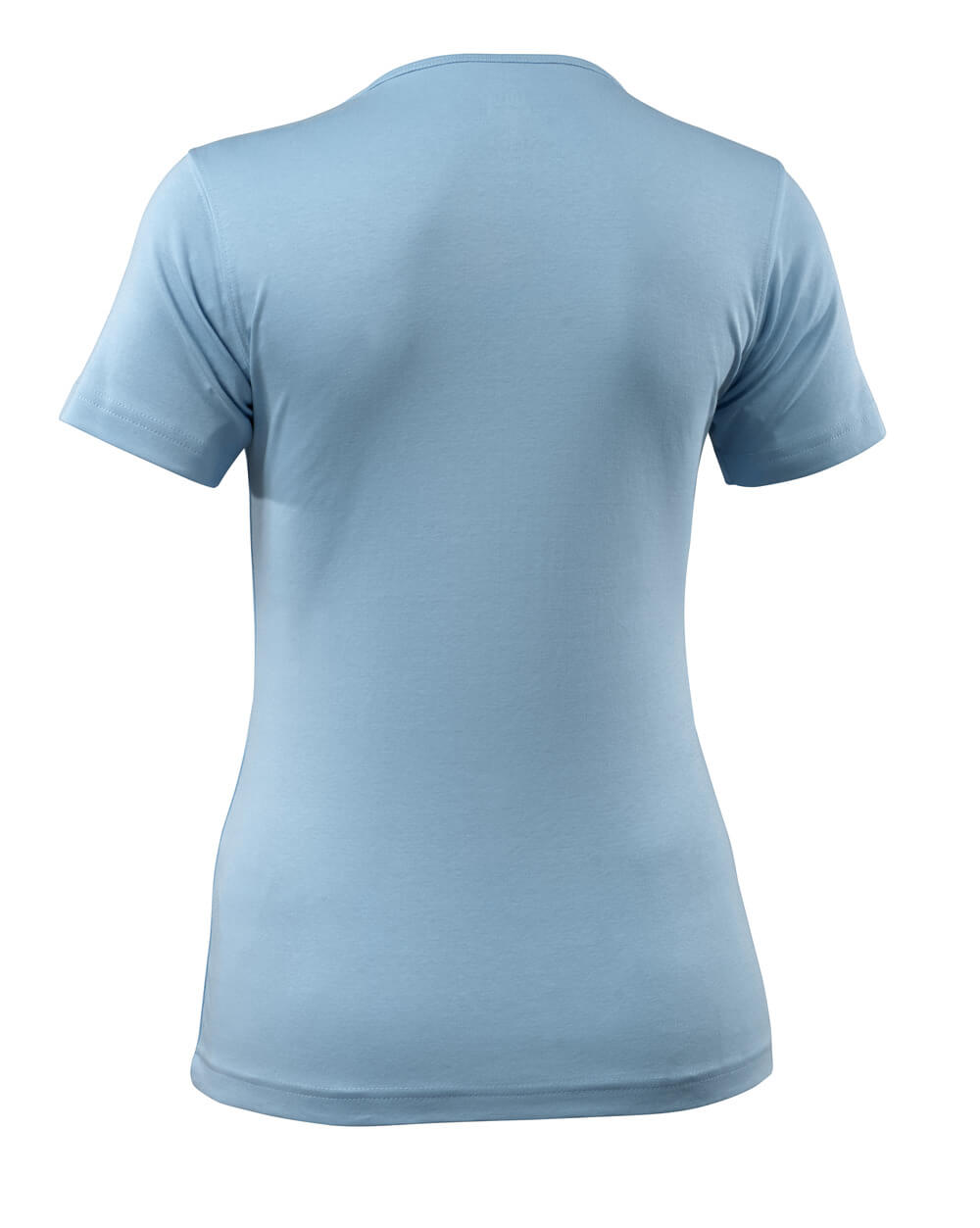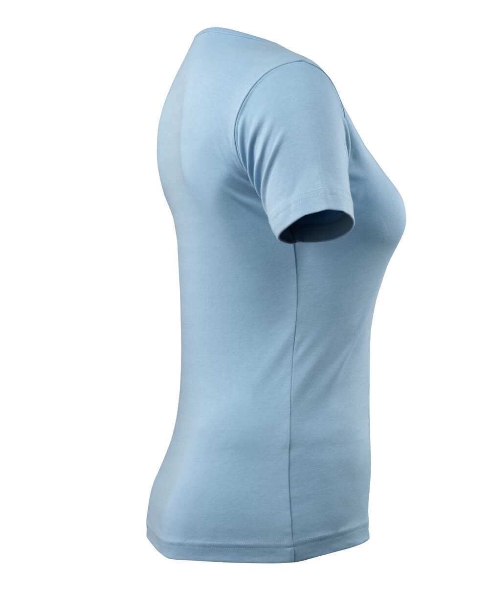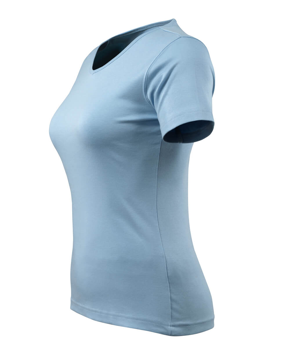 Basic. Coupe femme. Encolure en V. Encolure en maille côtelée. Bande de renfort sur les coutures au niveau de la nuque.