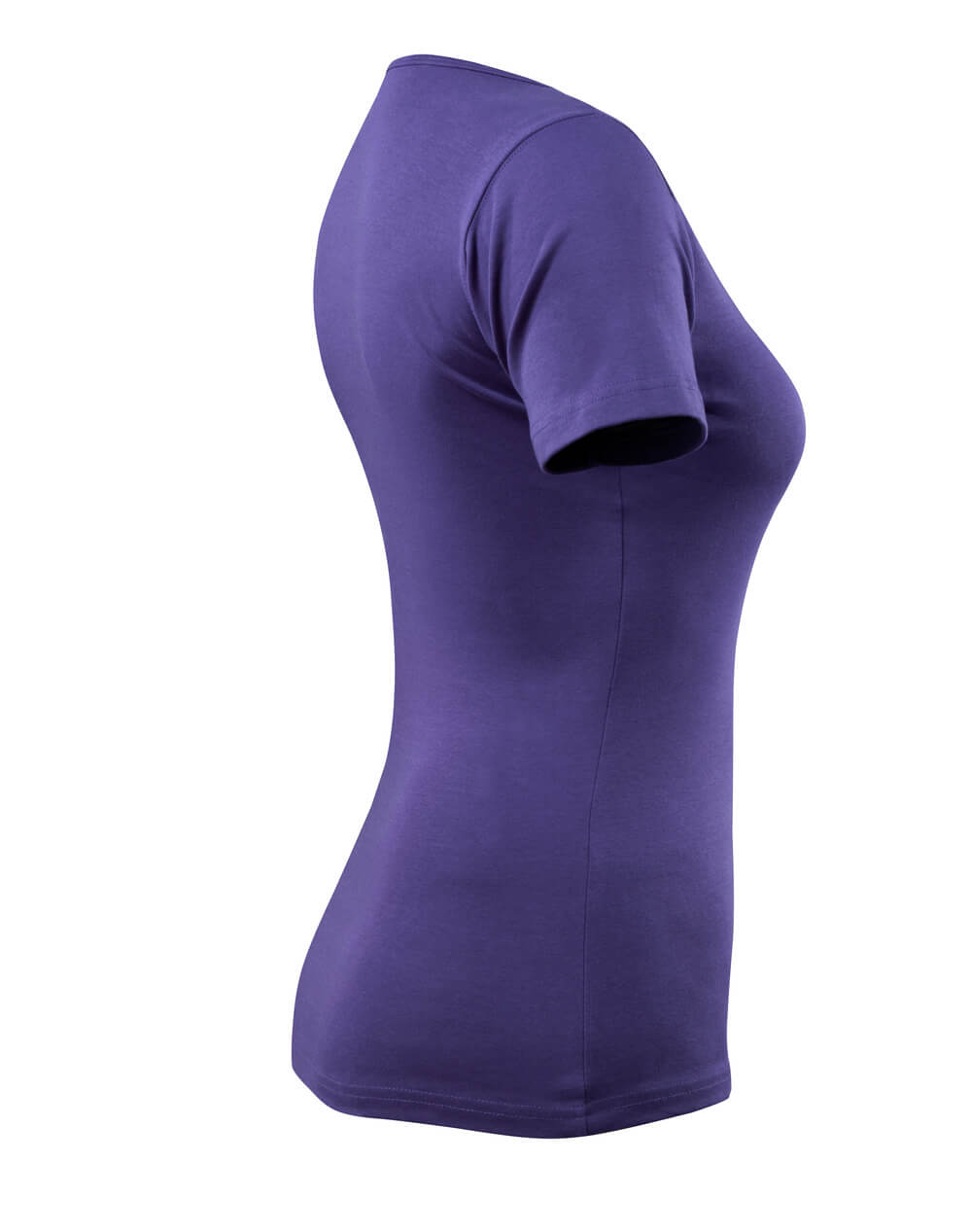 Basic. Coupe femme. Encolure en V. Encolure en maille côtelée. Bande de renfort sur les coutures au niveau de la nuque.
