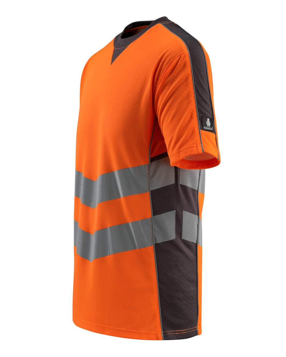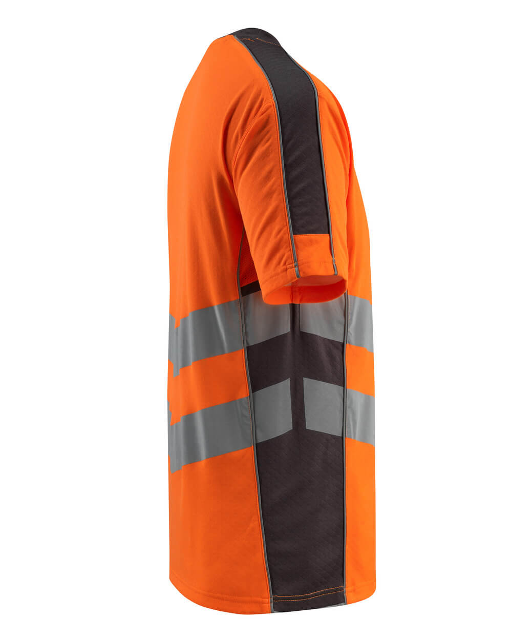 Premium. Fluorescent(e) avec bandes rétroréfléchissantes transversales en biais. Bicolore. Coupe moderne. Intérieur confortable en coton et extérieur en polyester résistant. Bandes rétroréfléchissantes stretch. Encolure ronde. Encolure en maille côtelée. Bande de renfort sur les coutures au niveau de la nuque. Filet de ventilation sous les bras.