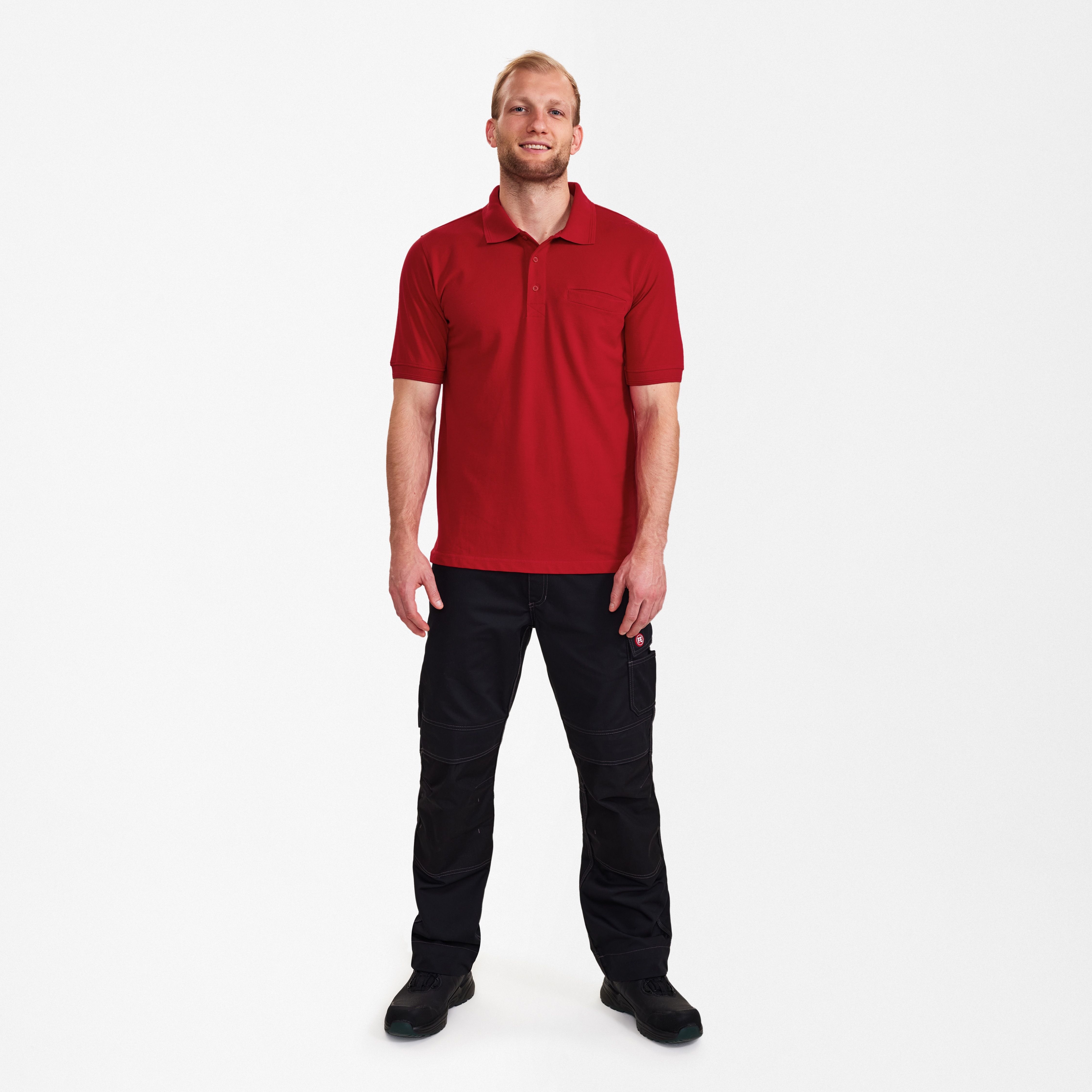 Polo en tissu piqué agréable à porter, avec col en côtes et bord en côtes sur le bas des manches. Dos allongé. Broderie ton sur ton sur l’épaule. Poche poitrine à gauche. La poche poitrine suffisamment grande pour permettre une impression/broderie du Logo de votre entreprise.