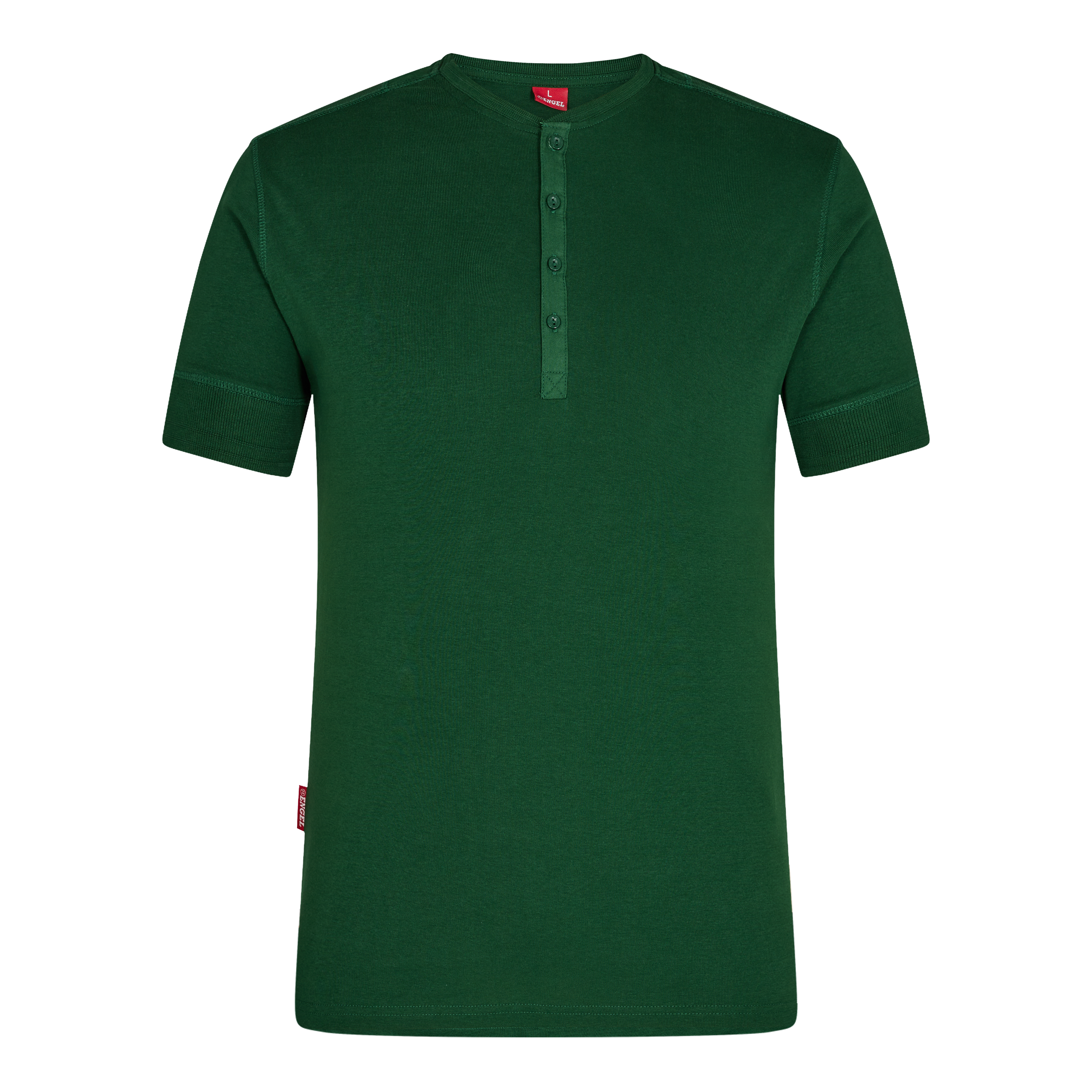 T-shirt à manches courtes, qualité agréable en côtes, avec large bord en côtes sur la manche, Dos rallongé. Tissu extérieur tissé sur la nuque, avec possibilité de pose impression/broderie sur la nuque.