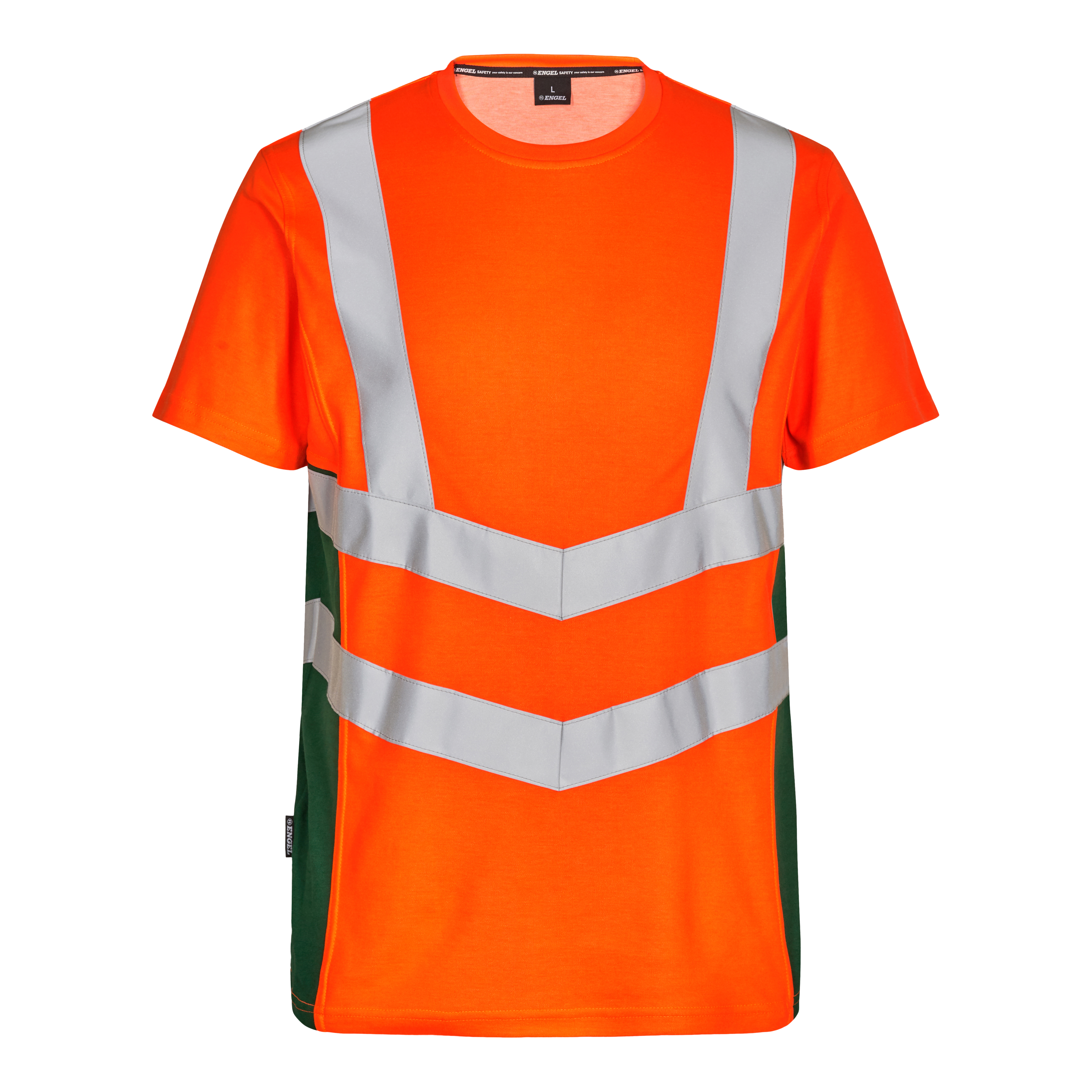 Elégant T-shirt hi-vis agréable à porter, dans une coupe moderne. Ce T-shirt est fabriqué en un agréable tissu piqué avec du coton à l’intérieur pour accroître le confort. Bord côte dans le cou.Des bandes réfléchissantes sur les épaules, ainsi qu’autour du corps. Classe de vêtement 2. Testé après 25 lavages.