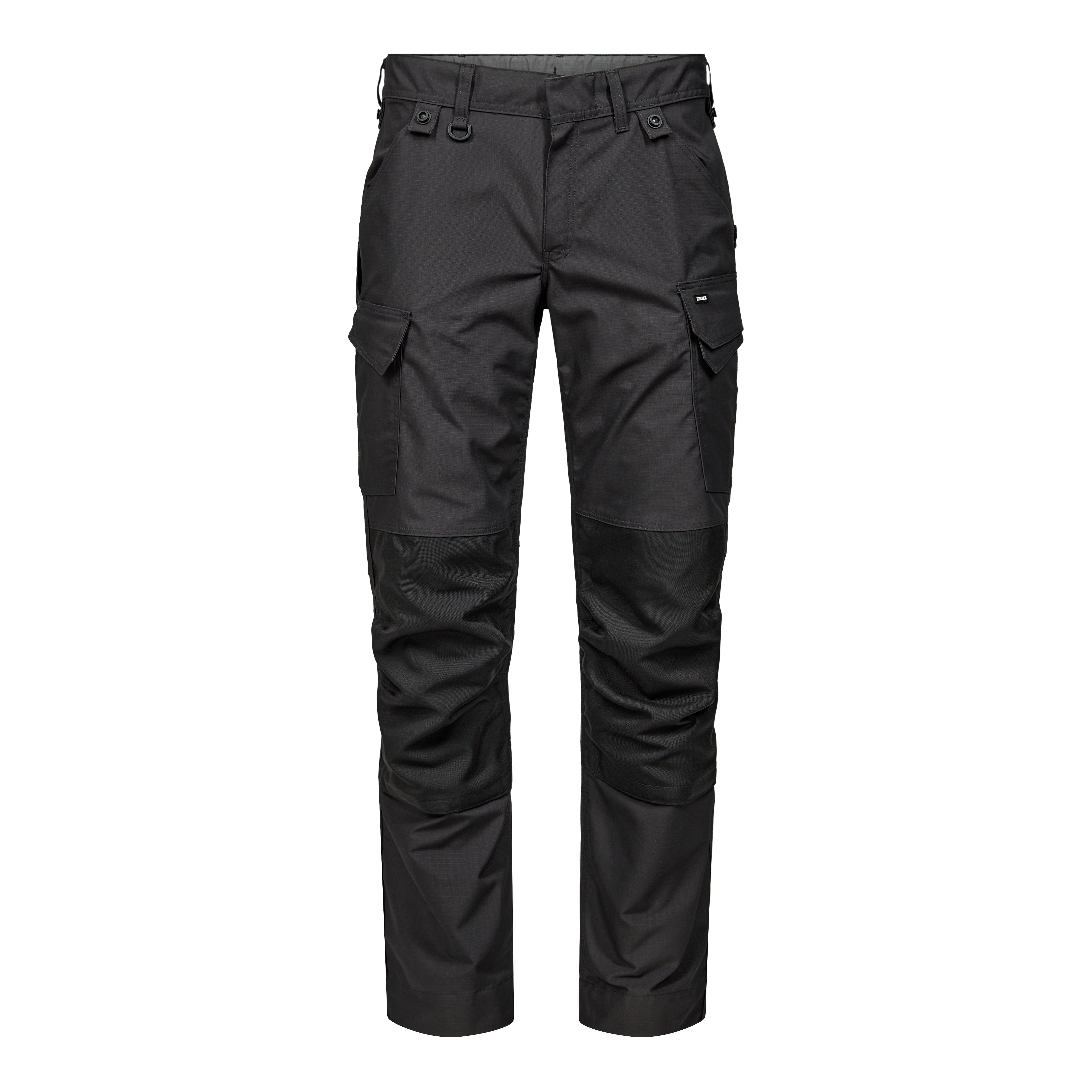 la priorité N° 1 de la conception de ces pantalons de travail est : la fonctionnalité, la durabilité et le confort pour répondre aux besoins des environnements de travail exigeants. Ils sont fabriqués en matériau Ripstop avec une extensibilité 2 directions, garantissant à la fois flexibilité et durabilité. Une fermeture à bouton dissimulée protège les surfaces des rayures, et l'élastique à l'arrière de la taille assure un ajustement optimal, même pendant le mouvement. Les pantalons ont des poches aux genoux avec renforcement CORDURA® et fermeture velcro, ainsi que deux options de réglage pour la hauteur des genouillères, permettant une personnalisation individuelle. Il y a de nombreuses poches fonctionnelles pour un rangement supplémentaire, y compris une poche sur la cuisse avec une fermeture éclair et une poche dédiée pour téléphone portable sur la cuisse gauche. La poche renforcée pour mètre et une boucle pour marteau facilitent le rangement des outils. De même, des boutons attachés permettent un montage rapide des poches à outils suspendues. Une sangle pratique avec anneau en D permet, par exemple, de fixer de manière sécurisée et facile une carte d'identité. Les pantalons ont également un ourlet extra large, permettant d'allonger la longueur des jambes jusqu'à 6 cm, ou 4 cm avec une longueur d'enfourchure courte, pour répondre à différents besoins. L'impression réfléchissante à l'arrière des genoux augmente la visibilité, surtout dans des environnements plus sombres. Les pantalons conviennent pour le lavage industriel, assurant un entretien facile, même avec une utilisation fréquente. Nombre de bouteilles en plastique recyclées : 11.