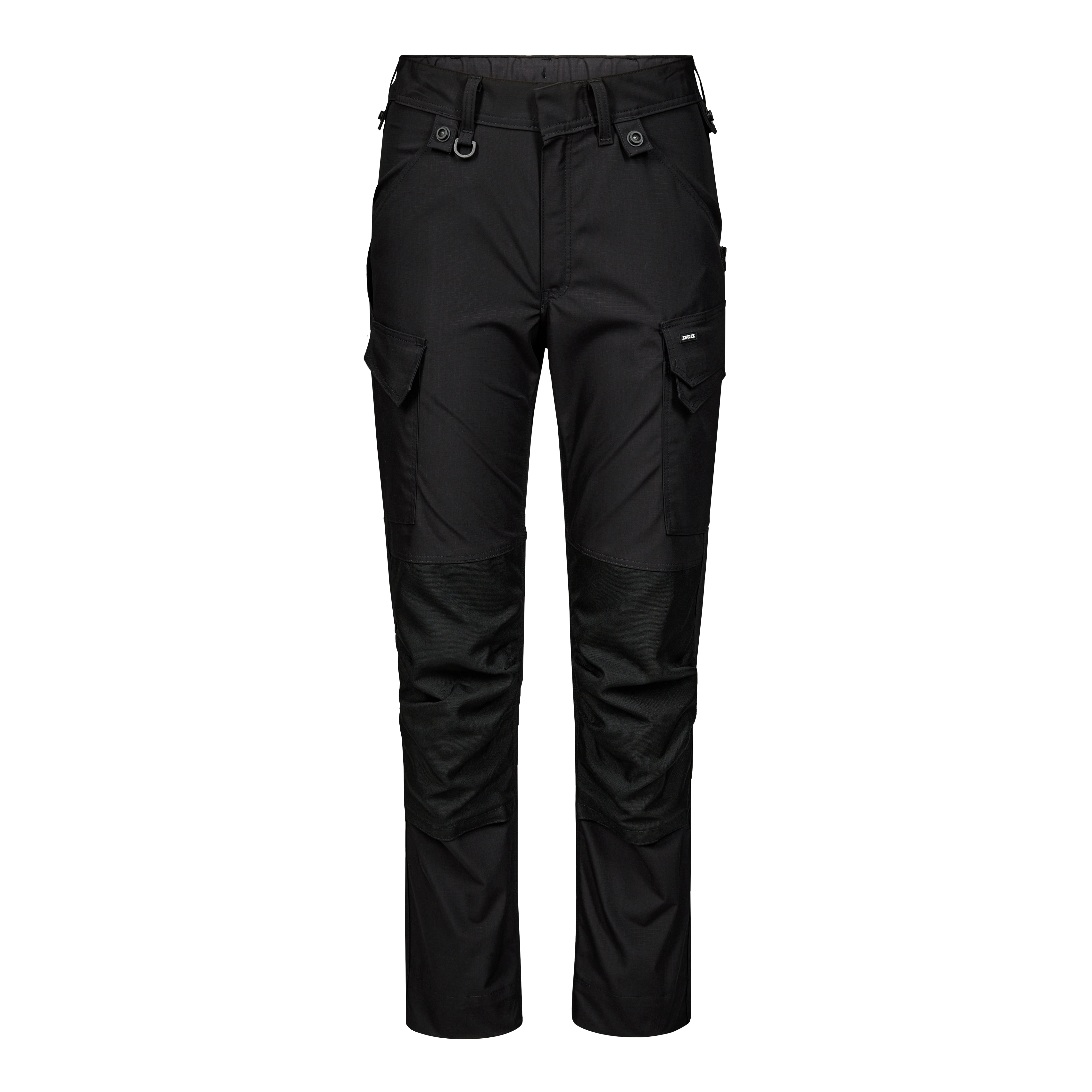 la priorité N°1 dans la conception de ces pantalons de travail pour femmes est : la fonctionnalité, la durabilité et le confort pour répondre aux exigences des environnements de travail difficiles. Ils sont fabriqués en matériau Ripstop avec une extensibilité bidirectionnelle, assurant à la fois flexibilité et durabilité. Une fermeture à bouton cachée protège les surfaces des rayures, et l'élastique à la taille arrière garantit un ajustement optimal même en mouvement. Les pantalons possèdent des poches pour genouillères avec renforcement CORDURA® et fermeture velcro, ainsi que deux options de réglage pour la hauteur des genouillères, permettant une personnalisation individuelle. De nombreuses poches fonctionnelles offrent un espace de rangement supplémentaire, y compris une poche sur la cuisse avec fermeture éclair et une poche dédiée pour téléphone portable sur la cuisse gauche. Une poche pour mètre renforcée et une sangle pour marteau facilitent le rangement des outils. Des boutons attachés permettent une fixation rapide des poches à outils pendantes. Une sangle pratique avec un anneau en D permet de fixer de manière sécurisée et facile une carte d'identité, par exemple. Les pantalons possèdent également un ourlet extra large, permettant d'allonger la longueur de la jambe jusqu'à 6 cm, ou 4 cm avec une longueur de tronc inférieure courte, afin qu'ils puissent être ajustés à différents besoins. L'impression réfléchissante à l'arrière des genoux augmente la visibilité, surtout dans des environnements plus sombres. Les pantalons conviennent au lavage industriel, garantissant un entretien facile même avec une utilisation fréquente. Nombre de bouteilles en plastique recyclées : 11.
