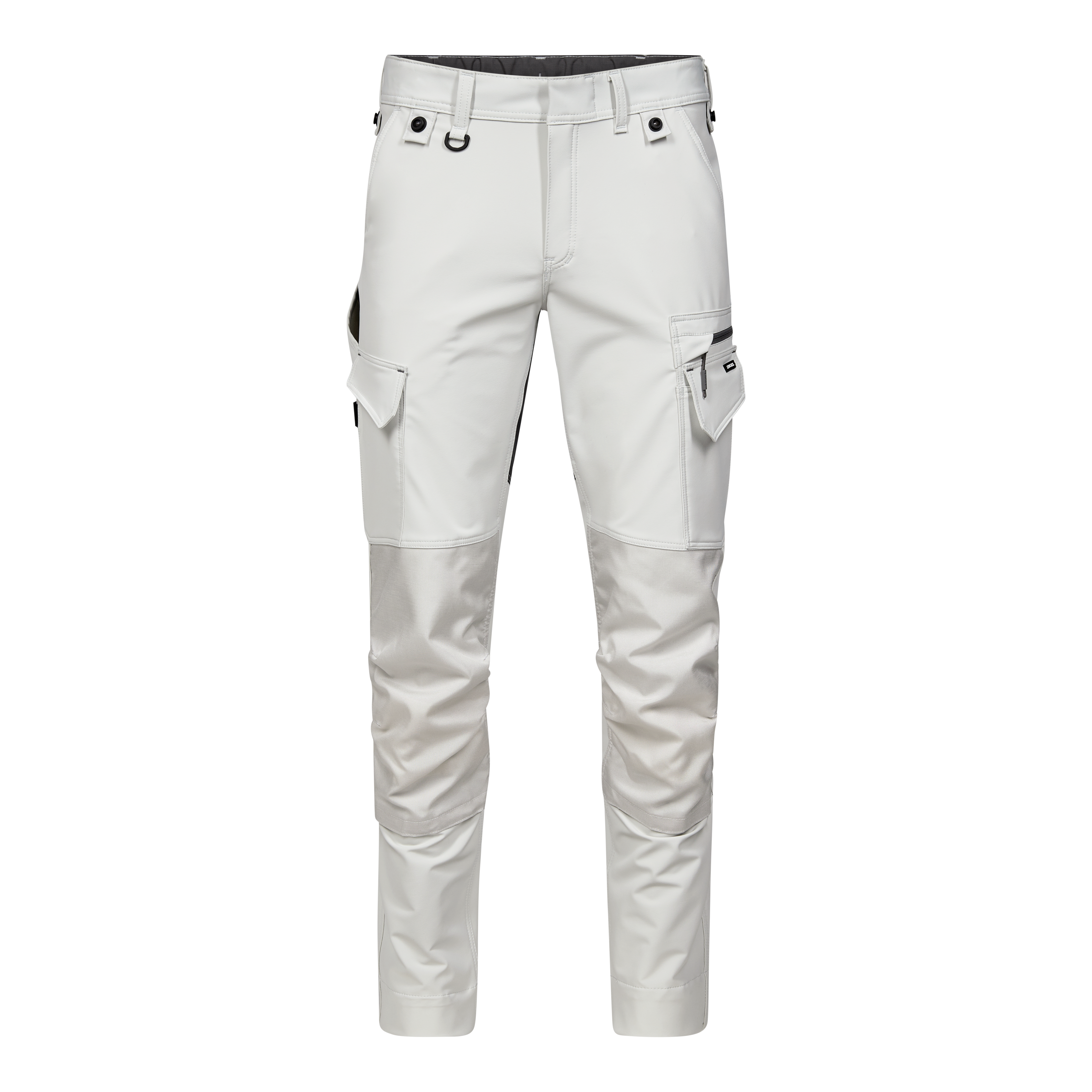 la priorité N°1 de la conception de ces pantalons de travailest: la fonctionnalité, la durabilité et le confort pour répondre aux besoins dans des environnements de travail exigeants. Ils sont fabriqués dans un matériau extensible 4 directions confortable qui offre une flexibilité accrue, tandis que le tissu Ripstop aux couleusr contrastées assure la durabilité et un look moderne. Une fermeture à bouton dissimulée protège les surfaces des rayures, et l'élastique à l'arrière de la taille assure un ajustement optimal, même en mouvement. Les pantalons ont des poches aux genoux avec renforcement CORDURA® et fermeture Velcro, ainsi que deux options de réglage pour l'ajustement en hauteur des genouillères, permettant une personnalisation individuelle. Il y a de nombreuses poches fonctionnelles pour un rangement supplémentaire, y compris une poche sur la cuisse avec fermeture éclair et une poche dédiée pour téléphone portable sur la cuisse gauche. La poche à mètre renforcée et la sangle pour marteau facilitent le rangement des outils. De même, des boutons sont attachés pour le montage rapide de poches à outils pendantes. Une sangle pratique avec anneau en D permet d'attacher de manière sécurisée et facile, par exemple, une carte d'identité. Les pantalons ont également un ourlet extra large, qui permet une extension de la longueur des jambes jusqu'à 6 cm, ou 4 cm avec une enfourchure courte, afin qu'ils puissent être adaptés à différents besoins. L'impression réfléchissante à l'arrière des genoux augmente la visibilité, surtout dans des environnements plus sombres. Le matériau principal est teint avec un processus de teinture en masse.