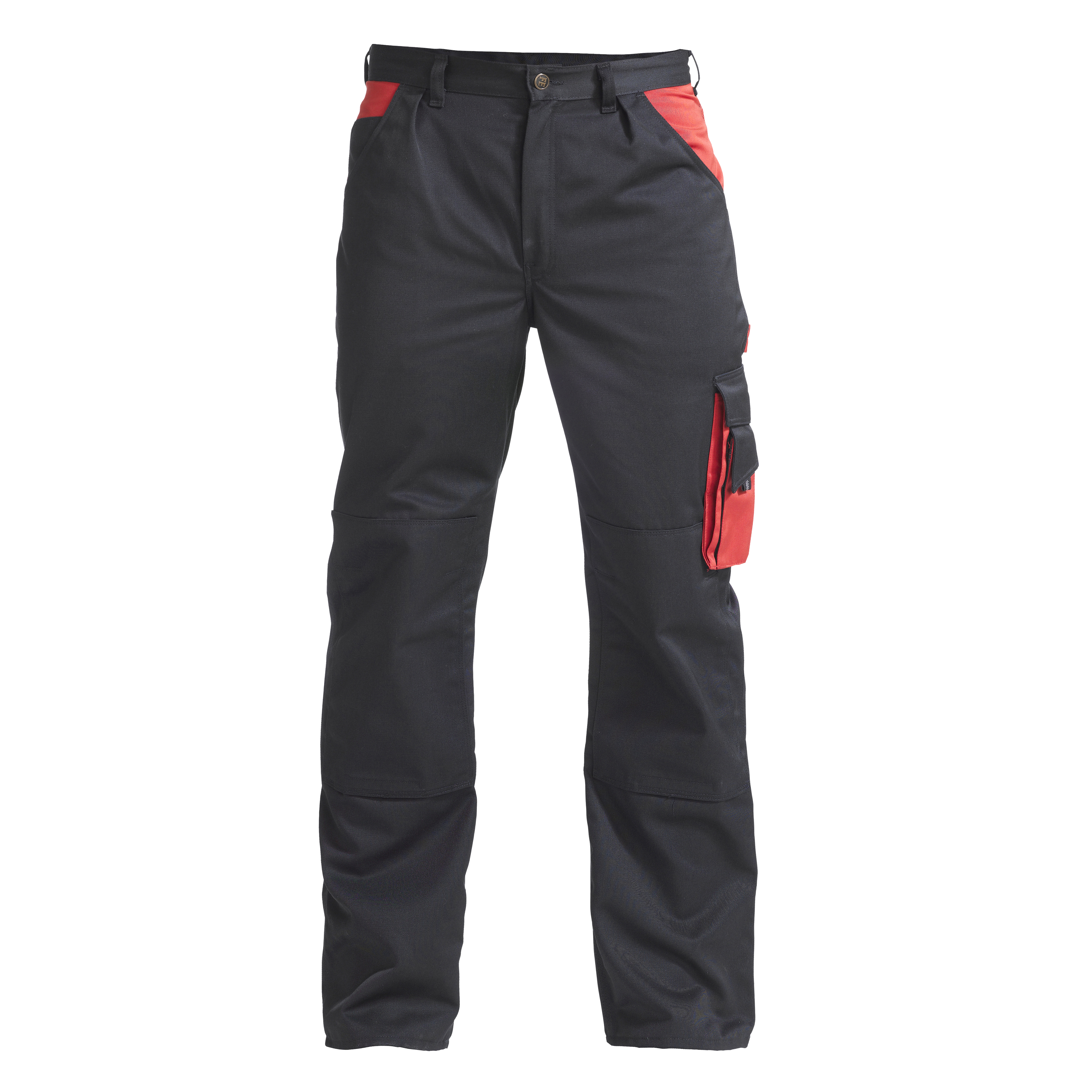 Bicolore. Design élégant. Deux poches latérales, une avec poche de monnaie. Deux poches revolver. Poche cuisse logeable avec poche pour portable et poches pour crayons. Passant porte-marteau. Grande poche mètre renforcée à soufflet. Renforts genoux et poches genouillères à fermeture velcro réglable au bas, pour protection mousse. Supporte un lavage industriel.