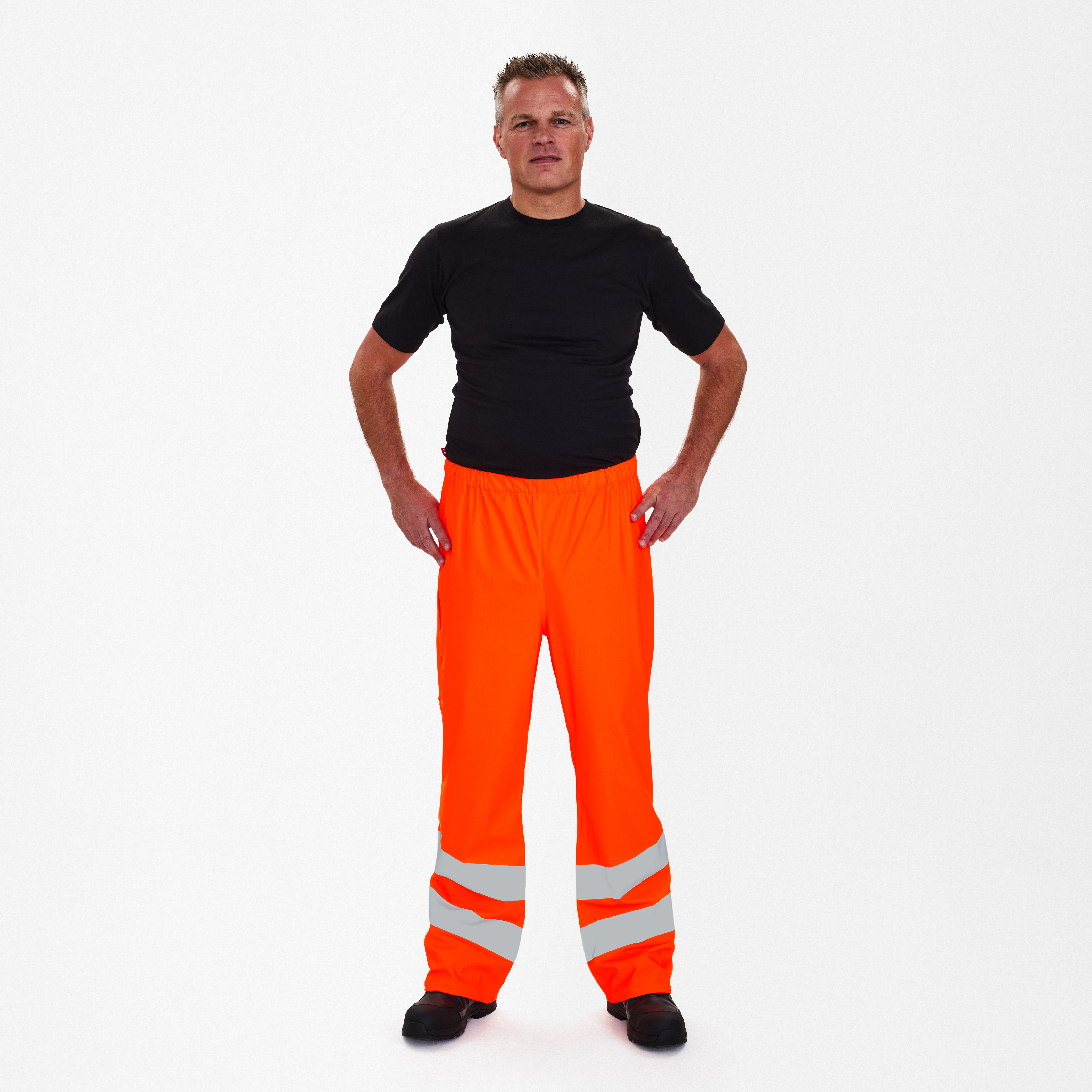 Pantalon de pluie fonctionnel avec coutures soudées. Élastique réglable à la taille. Poche pour mètre pliant fonctionnelle Largeur des bas de jambes réglables. Catégorie de vêtement 2. Testé après 5 lavages.