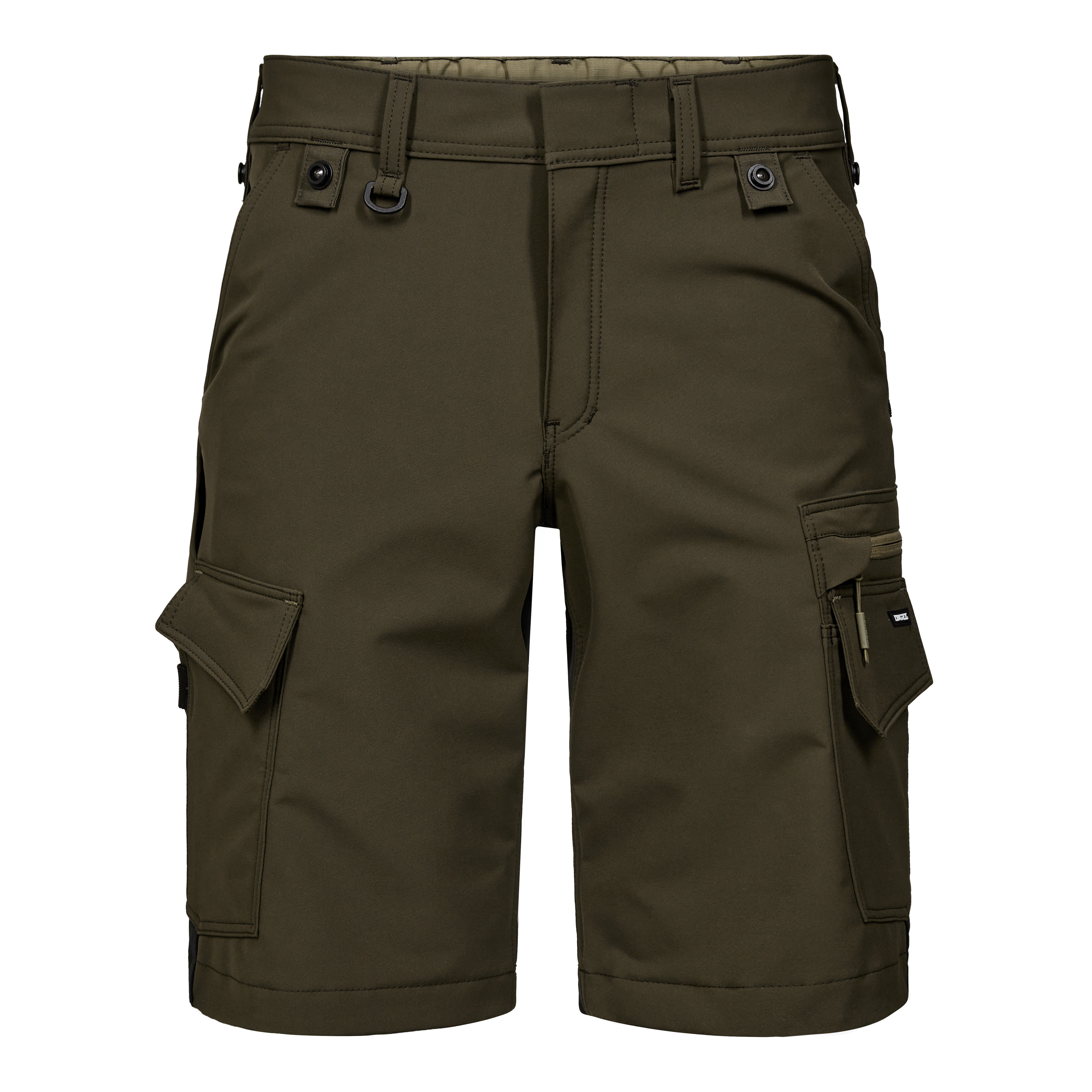 la priorité N°1 pour la conception de ces shorts est : la fonctionnalité, la durabilité et le confort. Ils sont fabriqués à partir d'un tissu extensible dans 4 sens qui offre une flexibilité accrue, tandis que le tissu Ripstop de couleur contrastée assure durabilité et look moderne. Une fermeture à bouton dissimulée protège les surfaces des rayures, et l'élastique à l'arrière de la taille assure un ajustement optimal, même en mouvement. Il y a de nombreuses poches fonctionnelles pour un rangement supplémentaire, y compris une poche sur la cuisse avec fermeture éclair et une poche dédiée pour téléphone portable sur la cuisse gauche. De plus, des boutons attachés permettent une fixation rapide des poches à outils pendantes. Une sangle pratique avec anneau en D permet, par exemple, de fixer de manière sécurisée et facile une carte d'identité. Le matériau principal est teinté en utilisant un procédé de teinture en masse.