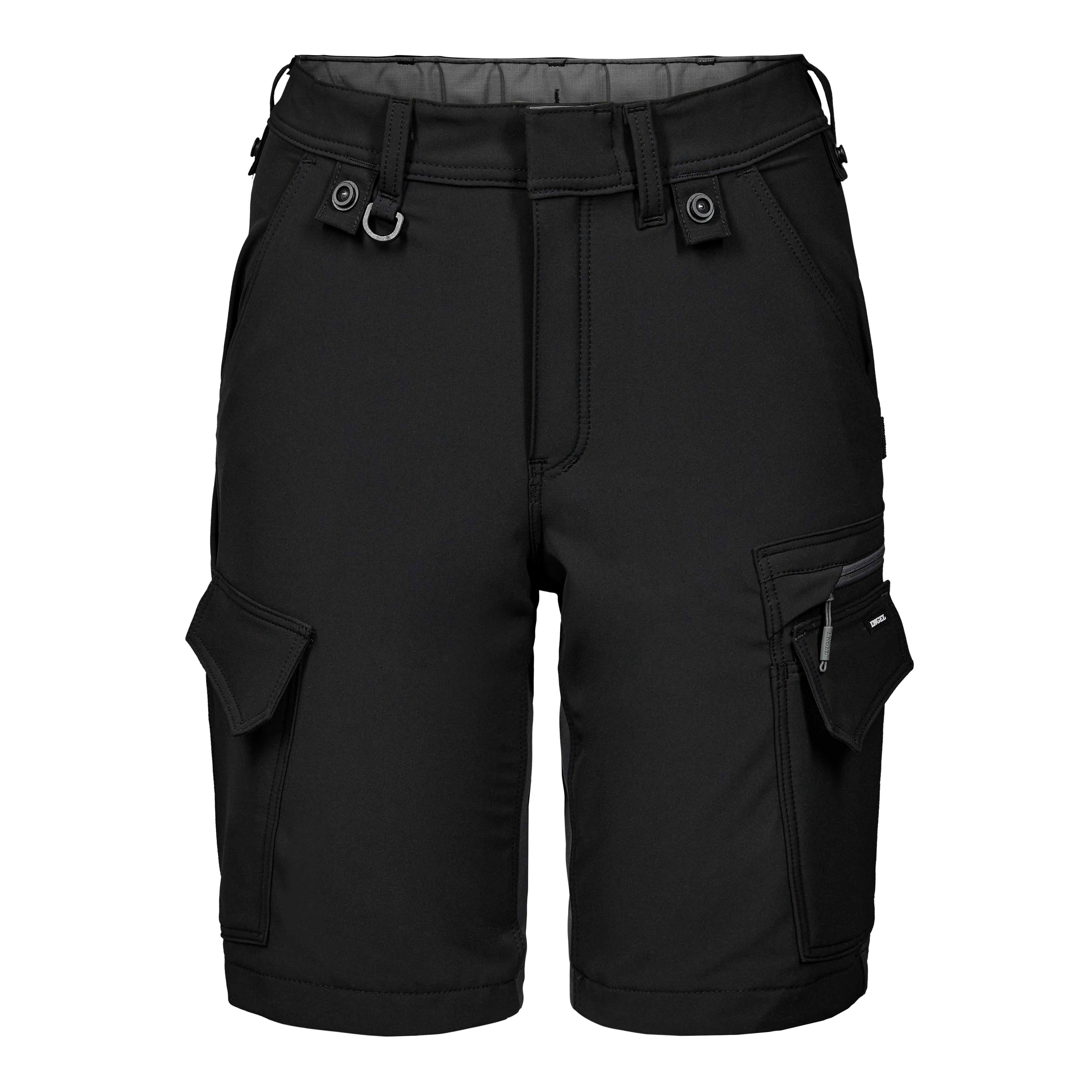 la priorité N°1 dans la conception de ces shorts pour femmes est : la fonctionnalité, la durabilité et le confort. Ils sont confectionnés dans un matériau extensible dans 4 directions, offrant une flexibilité accrue, tandis que le tissu Ripstop aux couleures contrastées assure durabilité et look moderne. Une fermeture à bouton cachée protège les surfaces des rayures, et l'élastique à l'arrière de la taille assure un ajustement optimal, même en mouvement. Il y a de nombreuses poches fonctionnelles pour un rangement supplémentaire, y compris une poche sur la cuisse avec fermeture éclair et une poche dédiée pour téléphone sur la cuisse gauche. De même, des boutons attachés permettent une fixation rapide des poches à outils pendantes. Une sangle pratique avec un anneau en D permet, par exemple, de fixer en toute sécurité et facilement une carte d'identité. Le matériau principal est teint en utilisant un procédé de teinture en masse.