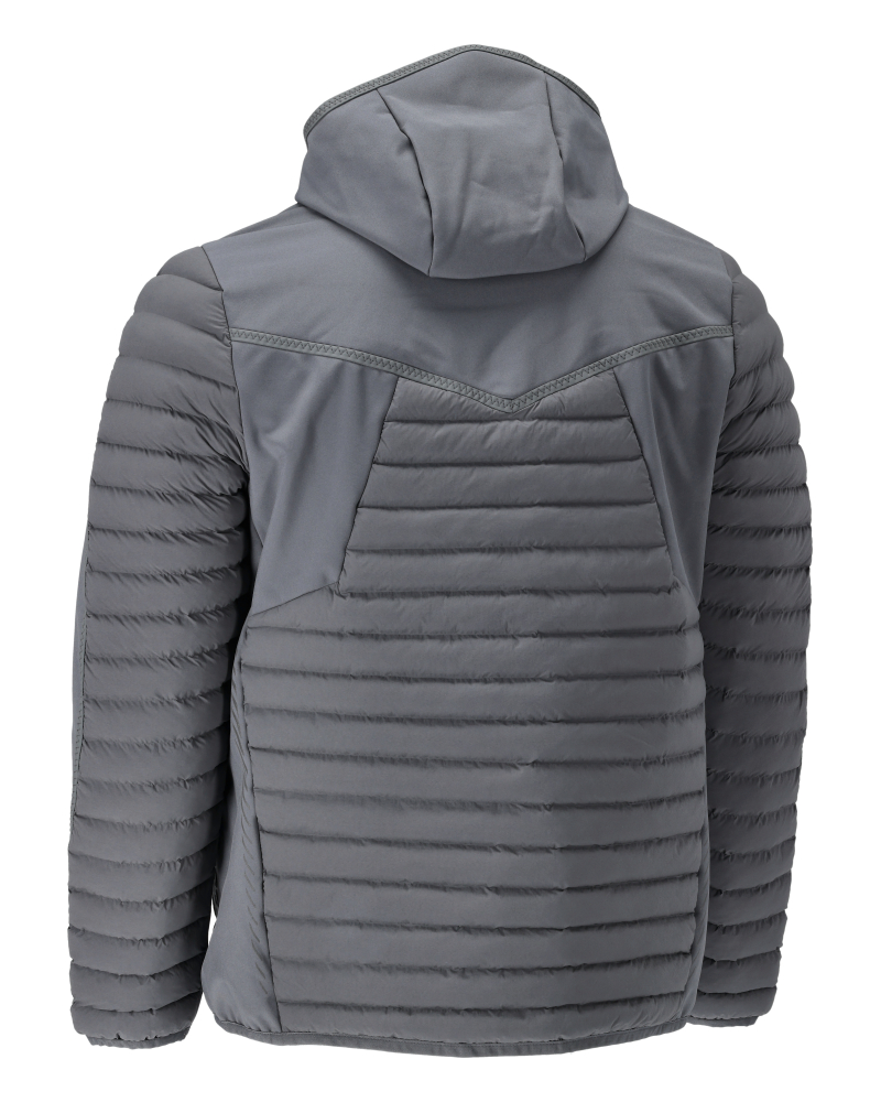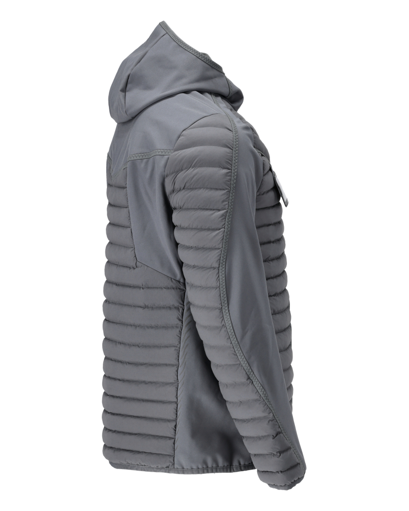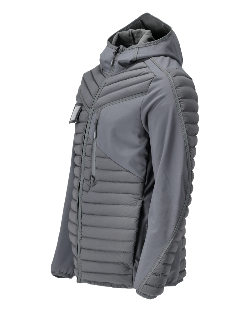 Tissu matelassé avec stretch. Coupe moderne. Respirant et hydrofuge. Capuche. Fermeture zippée. Poche poitrine zippée. Poches latérales zippées. Poche intérieure en maille filet. Porte-badge amovible. Manches ergonomiques pour une grande liberté de mouvement. Bande élastique au niveau des poignets et du bord inférieur. Effets rétroréfléchissants. Des balles pour le séchage en machine sont fournies.