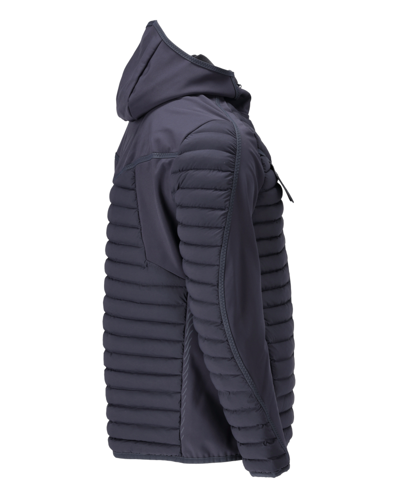 Tissu matelassé avec stretch. Coupe moderne. Respirant et hydrofuge. Capuche. Fermeture zippée. Poche poitrine zippée. Poches latérales zippées. Poche intérieure en maille filet. Porte-badge amovible. Manches ergonomiques pour une grande liberté de mouvement. Bande élastique au niveau des poignets et du bord inférieur. Effets rétroréfléchissants. Des balles pour le séchage en machine sont fournies.