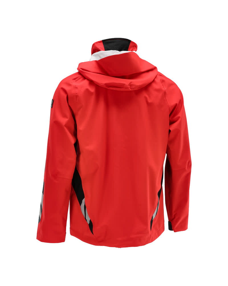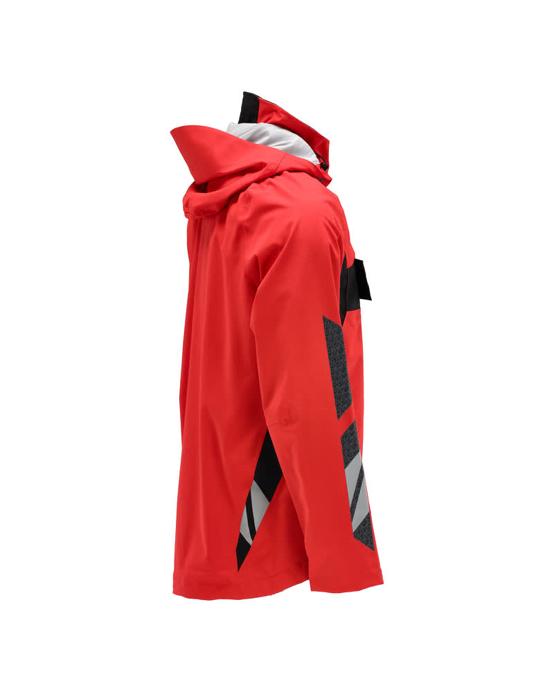 Tissu léger. Imperméable, coupe-vent et permettant au corps de respirer. Coutures thermocollées. Capuche amovible, avec doublure et cordon élastique de serrage. Fermeture zippée et double rabat coupe-vent. Poche intérieure zippée. Porte-badge amovible. Poche poitrine zippée. Poches latérales zippées. Taille ajustable à l'aide d'un cordon élastique de serrage. Poignets en maille côtelée dissimulés à l'intérieur des manches. Avec motifs imprimés et bandes rétroréfléchissantes.