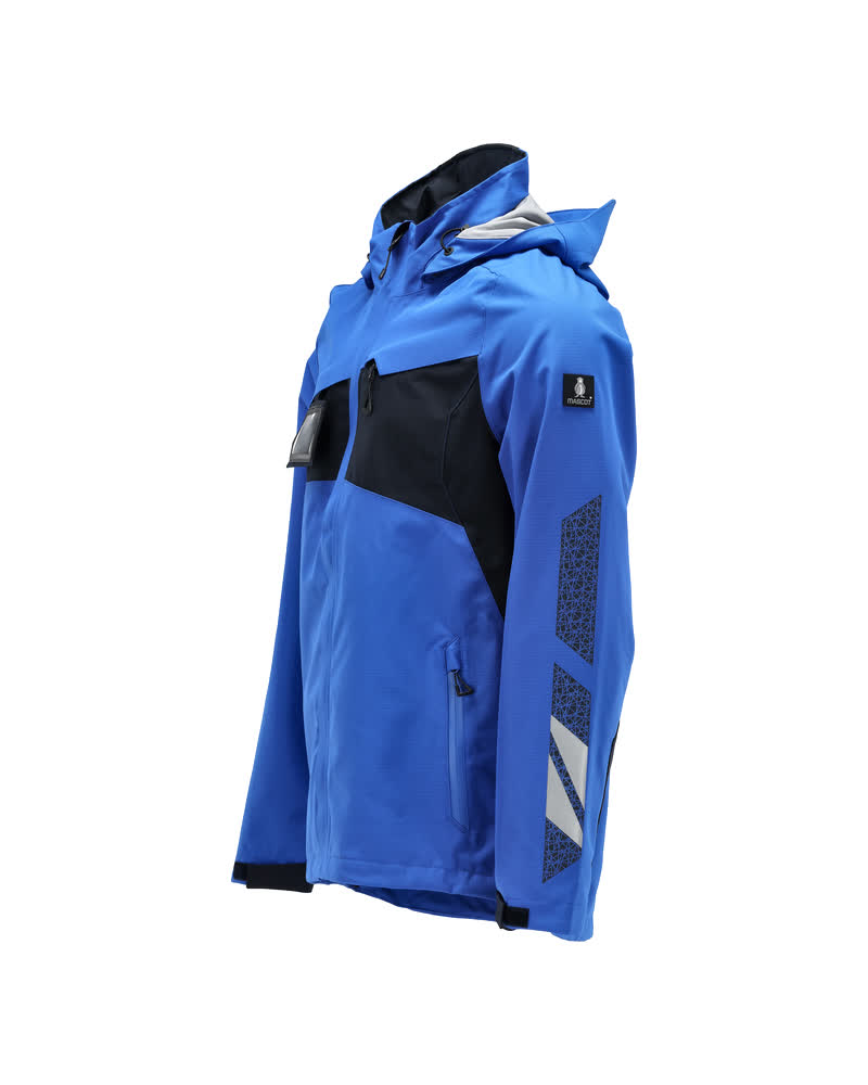 Imperméable, coupe-vent et permettant au corps de respirer. Coutures thermocollées. Capuche amovible, avec doublure et cordon élastique de serrage. Fermeture zippée et double rabat coupe-vent. Poche intérieure zippée. Porte-badge amovible. Poche poitrine zippée. Poches latérales zippées. Taille ajustable à l'aide d'un cordon élastique de serrage. Manches renforcées en CORDURA®. Poignets en maille côtelée dissimulés à l'intérieur des manches. Avec motifs imprimés et bandes rétroréfléchissantes.