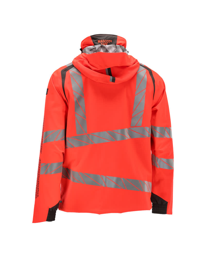 Fluorescent(e) avec bandes rétroréfléchissantes transversales, verticales et en biais. Bicolore. Extrêmement respirant, tout en étant imperméable et coupe-vent. Coutures thermocollées. Capuche amovible, avec doublure et cordon élastique de serrage. Fermeture zippée et double rabat coupe-vent. Poches intérieures - dont deux zippées et une ouverte en filet. Porte-badge amovible. Poche poitrine avec fermeture zippée étanche. Poches latérales avec fermeture zippée étanche. Col montant. Bord-côte intérieur dans le bas avant de la veste. Rabat supplémentaire en bas du dos pouvant être détaché et assurer une longueur supplémentaire pour protéger du froid et du vent. Elastique aux poignets. Avec effets d'impression.