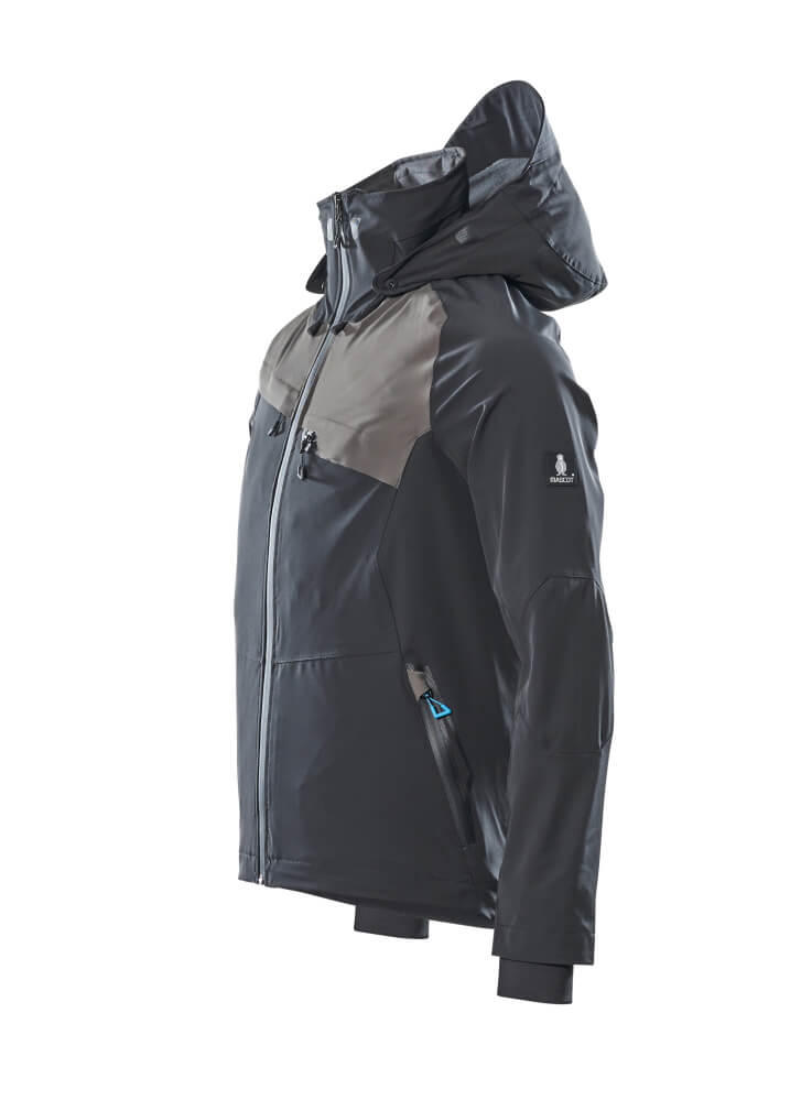 Bicolore. Tissu ultimate stretch de poids léger et ultrarésistant. Imperméable, coupe-vent et permettant au corps de respirer. Coutures thermocollées. Fermeture zippée étanche et rabat coupe-vent à l'intérieur. Capuche amovible, avec doublure et cordon élastique de serrage. Col montant avec cordon élastique de serrage. Poche intérieure zippée. Poches poitrine zippées. Manches ergonomiques pour une grande liberté de mouvement. Poches latérales zippées. Dos long. Taille ajustable à l'aide d'un cordon élastique de serrage. Poignets en maille côtelée dissimulés à l'intérieur des manches. Passe pouce. Effets rétroréfléchissants.