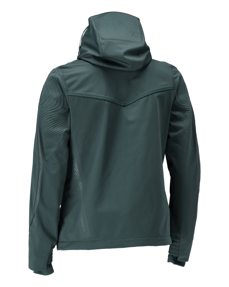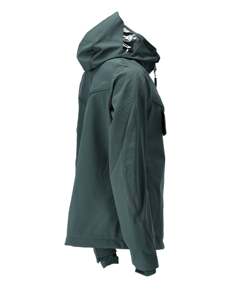 Coupe femme. Tissu ultimate stretch de poids léger. Imperméable, coupe-vent et permettant au corps de respirer. Coutures thermocollées. Fermeture zippée et rabat coupe-vent à l'intérieur. Capuche doublée amovible. La capuche est équipée de plastique transparent sur les côtés. Col montant. Poches intérieures. Poches latérales zippées. Porte-badge amovible. Manches ergonomiques pour une grande liberté de mouvement. Poignet de manche avec bande élastique. Poignets en maille côtelée dissimulés à l'intérieur des manches. Passe pouce. Dos long. Zip intérieur au bas du dos permettant la réalisation d'impressions/broderies. Effets rétroréfléchissants.