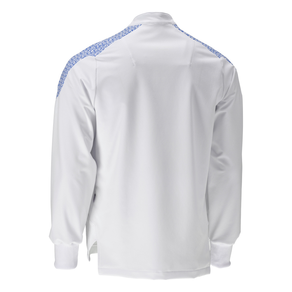 Tissu ultimate stretch de poids léger et résistant. Séchage rapide. Poignets en maille côtelée. Fentes sur les côtés. Fermetures avec boutons-pression non visibles/recouverts. Boutons-pression métalliques. Emplacements pour marquage du vêtement, puce HF et puce UHF. Marquage de couleur pour chaque taille. Le produit est résistant au lavage industriel.