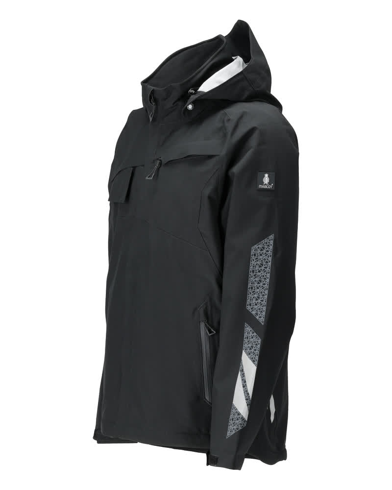 Tissu léger. Coutures thermocollées. Imperméable, coupe-vent et permettant au corps de respirer. Avec CLIMASCOT® Lightweight Insulation. Capuche amovible, avec doublure et cordon élastique de serrage. Fermeture zippée et double rabat coupe-vent. Poche intérieure zippée. Porte-badge amovible. Poche poitrine zippée. Poches latérales zippées. Taille ajustable à l'aide d'un cordon élastique de serrage. Zip intérieur au bas du dos permettant la réalisation d'impressions/broderies. Poignets en maille côtelée dissimulés à l'intérieur des manches. Avec motifs imprimés et bandes rétroréfléchissantes.