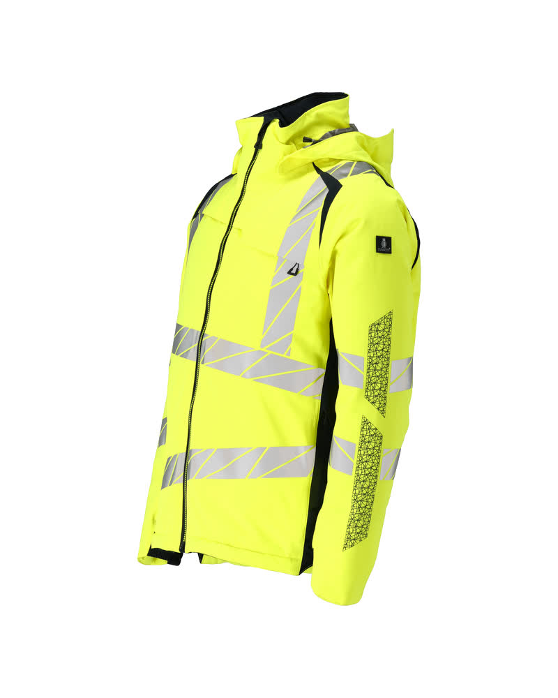 Fluorescent(e) avec bandes rétroréfléchissantes transversales, verticales et en biais. Extrêmement respirant, tout en étant imperméable et coupe-vent. Avec CLIMASCOT® Lightweight Insulation. Bicolore. Coutures thermocollées. Capuche amovible, avec doublure et cordon élastique de serrage. Fermeture zippée et double rabat coupe-vent. Poches intérieures - dont deux zippées et une ouverte en filet. Porte-badge amovible. Poche poitrine avec fermeture zippée étanche. Poches latérales avec fermeture zippée étanche. Col montant. Bord-côte intérieur dans le bas avant de la veste. Rabat supplémentaire en bas du dos pouvant être détaché et assurer une longueur supplémentaire pour protéger du froid et du vent. Elastique aux poignets. Zip intérieur au bas du dos permettant la réalisation d'impressions/broderies. Avec effets d'impression.