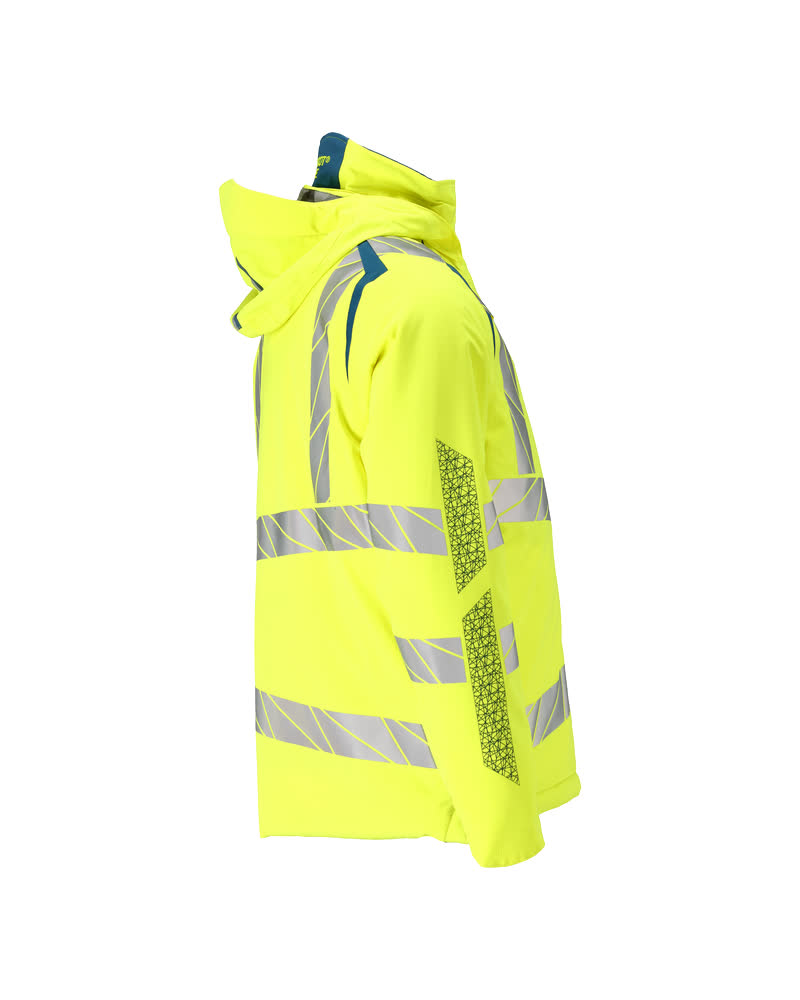Fluorescent(e) avec bandes rétroréfléchissantes transversales, verticales et en biais. Extrêmement respirant, tout en étant imperméable et coupe-vent. Avec CLIMASCOT® Lightweight Insulation. Bicolore. Coutures thermocollées. Capuche amovible, avec doublure et cordon élastique de serrage. Fermeture zippée et double rabat coupe-vent. Poches intérieures - dont deux zippées et une ouverte en filet. Porte-badge amovible. Poche poitrine avec fermeture zippée étanche. Poches latérales avec fermeture zippée étanche. Col montant. Bord-côte intérieur dans le bas avant de la veste. Rabat supplémentaire en bas du dos pouvant être détaché et assurer une longueur supplémentaire pour protéger du froid et du vent. Elastique aux poignets. Zip intérieur au bas du dos permettant la réalisation d'impressions/broderies. Avec effets d'impression.