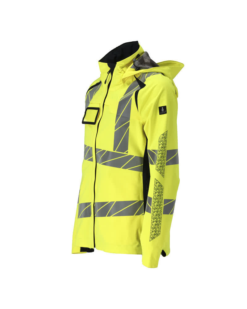 Coupe femme. Fluorescent(e) avec bandes rétroréfléchissantes transversales, verticales et en biais. Extrêmement respirant, tout en étant imperméable et coupe-vent. Avec CLIMASCOT® Lightweight Insulation. Bicolore. Coutures thermocollées. Capuche amovible, avec doublure et cordon élastique de serrage. Fermeture zippée et double rabat coupe-vent. Poches intérieures - dont deux zippées et une ouverte en filet. Porte-badge amovible. Poches latérales avec fermeture zippée étanche. Col montant. Bord-côte intérieur dans le bas avant de la veste. Rabat supplémentaire en bas du dos pouvant être détaché et assurer une longueur supplémentaire pour protéger du froid et du vent. Elastique aux poignets. Zip intérieur au bas du dos permettant la réalisation d'impressions/broderies. Avec effets d'impression.