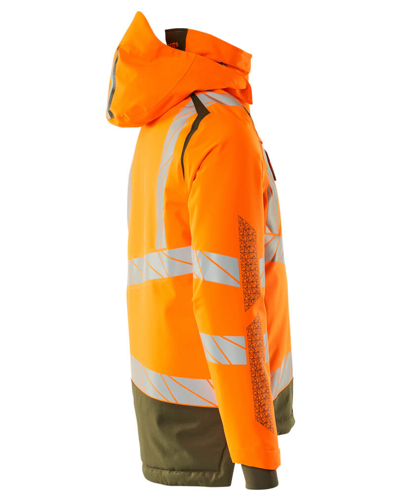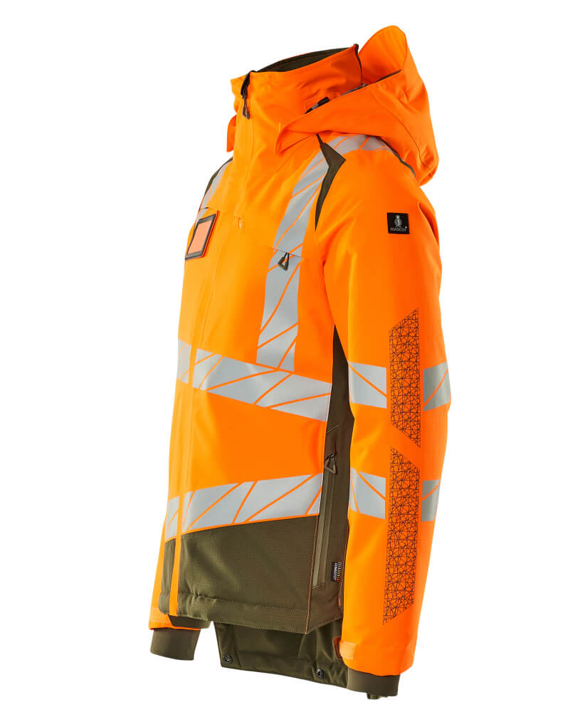 Fluorescent(e) avec bandes rétroréfléchissantes transversales, verticales et en biais. Un tissu très résistant à l'usure, respirant, imperméable et coupe-vent. Avec CLIMASCOT® Lightweight Insulation. Bicolore. Coutures thermocollées. Capuche amovible, avec doublure et cordon élastique de serrage. Fermeture zippée et double rabat coupe-vent. Poches intérieures - dont deux zippées et une ouverte en filet. Porte-badge amovible. Poche poitrine avec fermeture zippée étanche. Poches latérales avec fermeture zippée étanche. Col montant. Bord-côte intérieur dans le bas avant de la veste. Rabat supplémentaire en bas du dos pouvant être détaché et assurer une longueur supplémentaire pour protéger du froid et du vent. Poignets en maille côtelée dissimulés à l'intérieur des manches. Bande auto-agrippante aux poignets. Zip intérieur au bas du dos permettant la réalisation d'impressions/broderies. Avec effets d'impression.