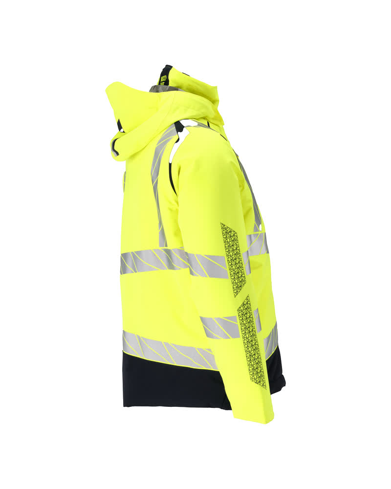 Fluorescent(e) avec bandes rétroréfléchissantes transversales, verticales et en biais. Un tissu très résistant à l'usure, respirant, imperméable et coupe-vent. Avec CLIMASCOT® Lightweight Insulation. Bicolore. Coutures thermocollées. Capuche amovible, avec doublure et cordon élastique de serrage. Fermeture zippée et double rabat coupe-vent. Poches intérieures - dont deux zippées et une ouverte en filet. Porte-badge amovible. Poche poitrine avec fermeture zippée étanche. Poches latérales avec fermeture zippée étanche. Col montant. Bord-côte intérieur dans le bas avant de la veste. Rabat supplémentaire en bas du dos pouvant être détaché et assurer une longueur supplémentaire pour protéger du froid et du vent. Poignets en maille côtelée dissimulés à l'intérieur des manches. Bande auto-agrippante aux poignets. Zip intérieur au bas du dos permettant la réalisation d'impressions/broderies. Avec effets d'impression.