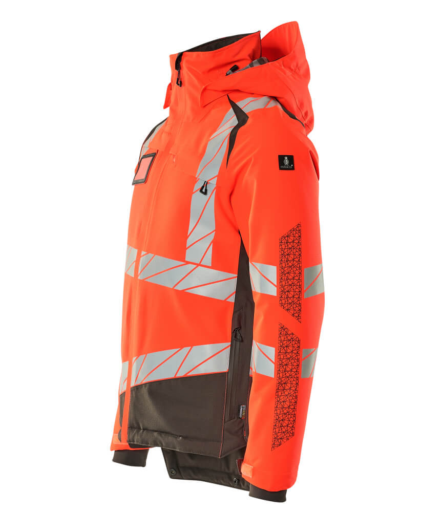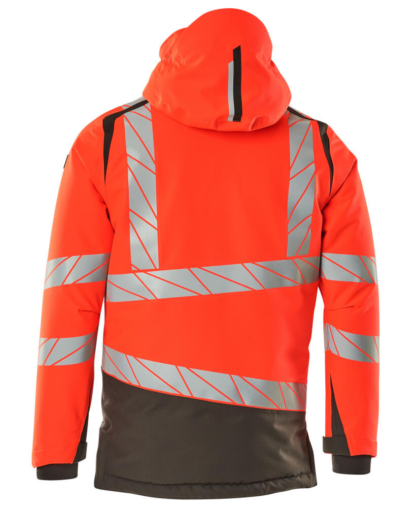 Fluorescent(e) avec bandes rétroréfléchissantes transversales, verticales et en biais. Un tissu très résistant à l'usure, respirant, imperméable et coupe-vent. Avec CLIMASCOT® Lightweight Insulation. Bicolore. Coutures thermocollées. Capuche amovible, avec doublure et cordon élastique de serrage. Fermeture zippée et double rabat coupe-vent. Poches intérieures - dont deux zippées et une ouverte en filet. Porte-badge amovible. Poche poitrine avec fermeture zippée étanche. Poches latérales avec fermeture zippée étanche. Col montant. Bord-côte intérieur dans le bas avant de la veste. Rabat supplémentaire en bas du dos pouvant être détaché et assurer une longueur supplémentaire pour protéger du froid et du vent. Poignets en maille côtelée dissimulés à l'intérieur des manches. Bande auto-agrippante aux poignets. Zip intérieur au bas du dos permettant la réalisation d'impressions/broderies. Avec effets d'impression.
