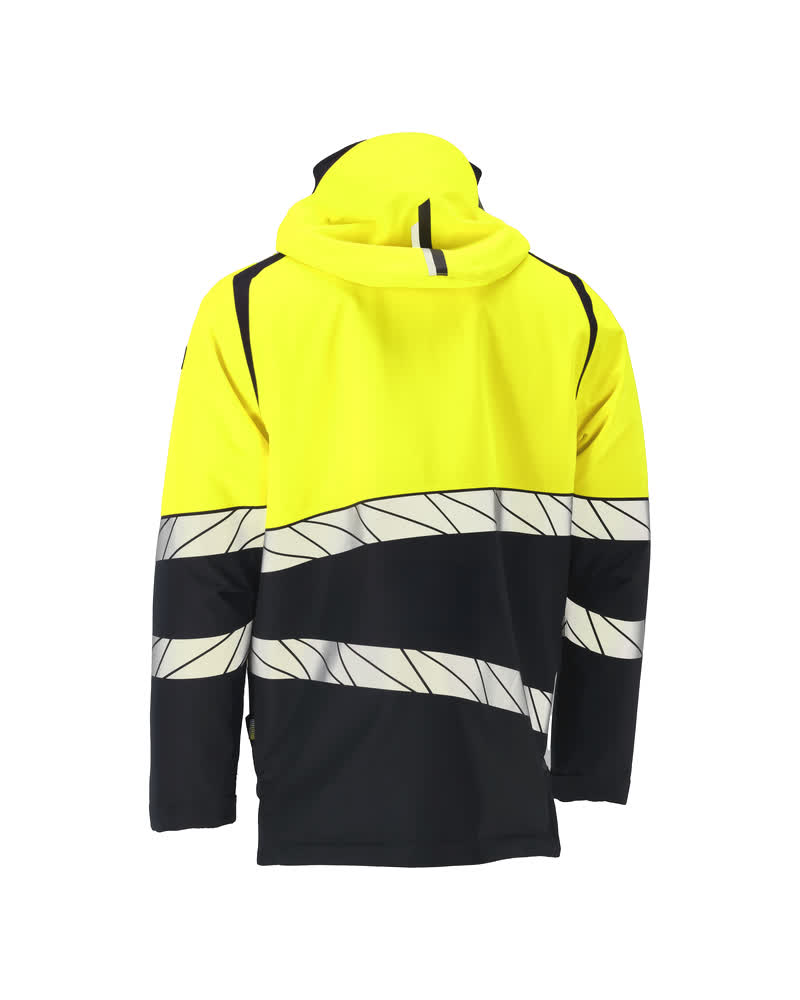 Fluorescent(e) avec bandes rétroréfléchissantes transversales, verticales et en biais. Un tissu très résistant à l'usure, respirant, imperméable et coupe-vent. Avec CLIMASCOT® Lightweight Insulation. Bicolore. Coutures thermocollées. Capuche amovible, avec doublure et cordon élastique de serrage. Fermeture zippée et double rabat coupe-vent. Poches intérieures - dont deux zippées et une ouverte en filet. Compatible avec un porte-badge amovible. Poche poitrine avec fermeture zippée étanche. Poches latérales avec fermeture zippée étanche. Col montant. Bord-côte intérieur dans le bas avant de la veste. Rabat supplémentaire en bas du dos pouvant être détaché et assurer une longueur supplémentaire pour protéger du froid et du vent. Poignets en maille côtelée dissimulés à l'intérieur des manches. Bande auto-agrippante aux poignets. Zip intérieur au bas du dos permettant la réalisation d'impressions/broderies. Avec effets d'impression.