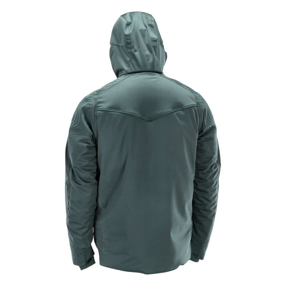 Tissu ultimate stretch de poids léger. Imperméable, coupe-vent et permettant au corps de respirer. Coutures thermocollées. Avec CLIMASCOT® Lightweight Insulation. Fermeture zippée et rabat coupe-vent à l'intérieur. Capuche doublée amovible. La capuche est équipée de plastique transparent sur les côtés. Col montant. Poche poitrine zippée. Poches latérales zippées. Porte-badge amovible. Manches ergonomiques pour une grande liberté de mouvement. Poches intérieures. Poignet de manche avec bande élastique. Poignets en maille côtelée dissimulés à l'intérieur des manches. Passe pouce. Dos long. Zip intérieur au bas du dos permettant la réalisation d'impressions/broderies. Effets rétroréfléchissants.
