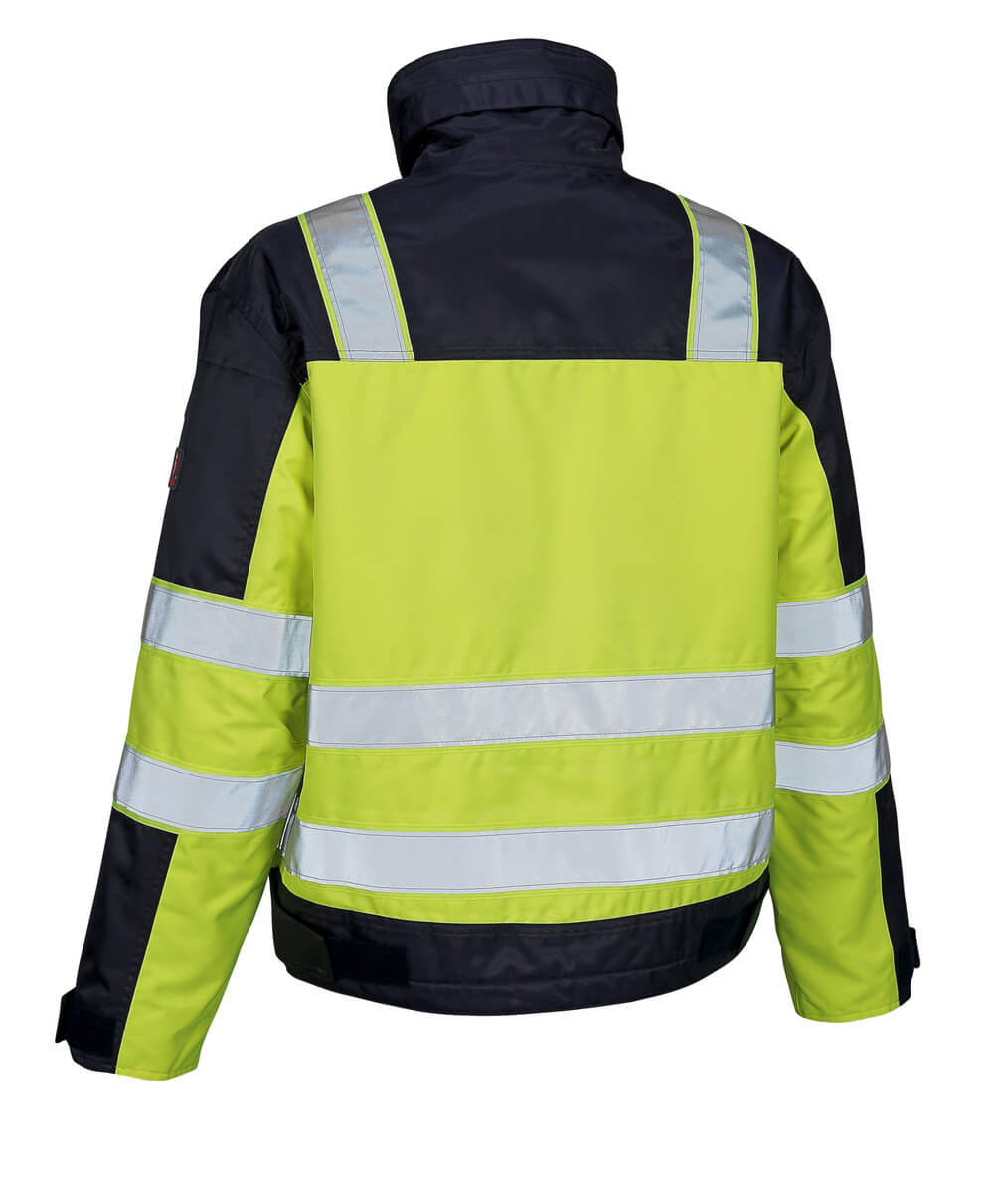 Tissu fluorescent avec bandes rétroréfléchissantes horizontales et verticales. Bicolore. Imperméable, coupe-vent et permettant au corps de respirer. Coutures thermocollées. Doublure matelassée. Col intérieur en maille côtelée. Fermeture zippée avec rabat coupe vent et boutons-pression non visibles/recouverts. Poche zippée sous le rabat coupe-vent. Poches poitrine sous rabat avec fermeture aimantée. Anneau en D. Porte-stylo. Poches latérales. Poche intérieure zippée. Conduits pour câble audio. Manches ergonomiques pour une grande liberté de mouvement. Poche manche zippée. Poignets en maille côtelée dissimulés à l'intérieur des manches et manches avec fermeture par bande auto-agrippante. Bord inférieur réglable par bandes auto-agrippantes. Zip intérieur au bas du dos permettant la réalisation d'impressions/broderies. Boutons-pression pour fixer la capuche. En raison des réactions magnétiques, le produit ne doit PAS être utilisé par des personnes portant des appareils médicaux tels que pacemaker ou défibrillateur. Se complète astucieusement avec la capuche 05114-880 (voir MASCOT® COMPLETE).