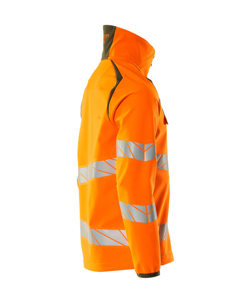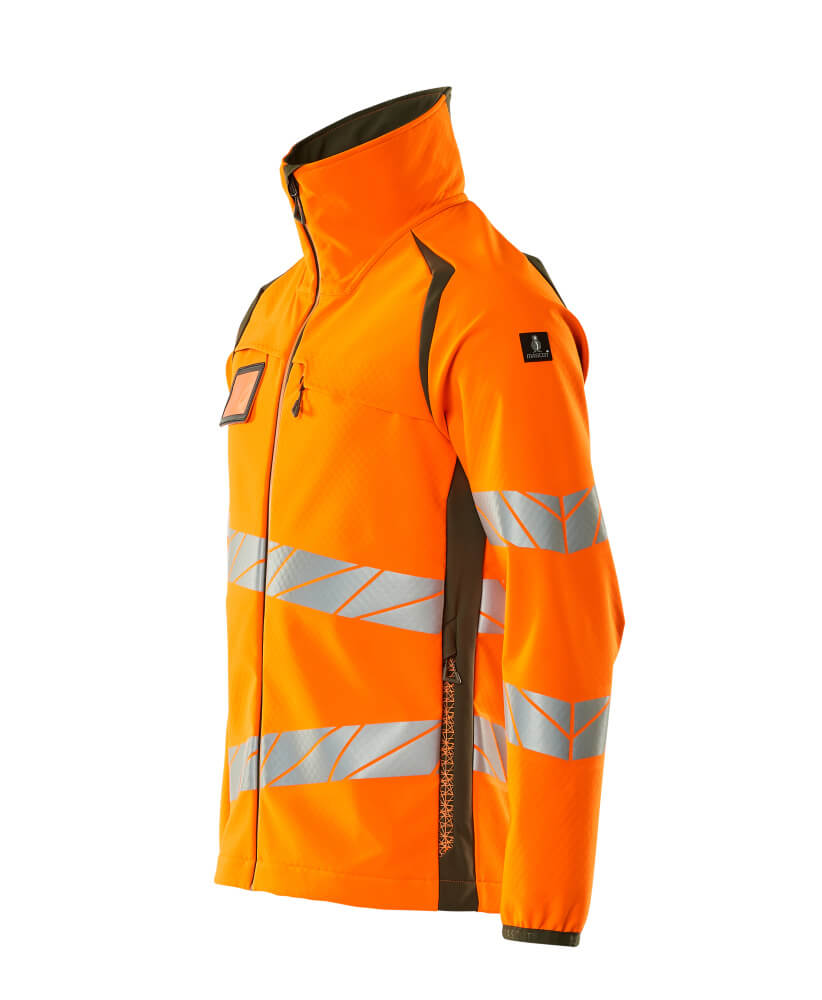 Fluorescent(e) avec bandes rétroréfléchissantes transversales en biais. Coupe-vent, hydrofuge et permettant au corps de respirer. Coupe moderne, plus près du corps mais offrant une excellente liberté de mouvement. Col montant. Bicolore. Fermeture zippée et rabat coupe-vent à l'intérieur. Poche poitrine zippée. Poches latérales avec fermeture zippée étanche. Poches intérieures. Elastique aux poignets. Taille ajustable à l'aide d'un cordon élastique de serrage. Porte-badge amovible.