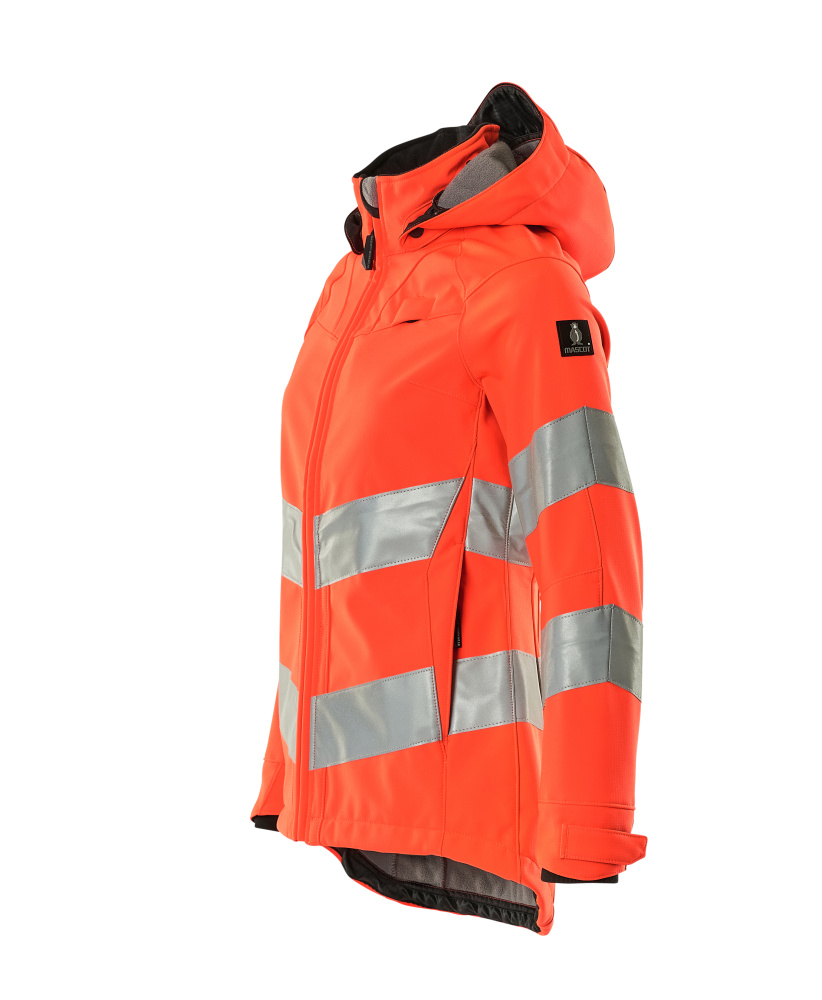 Coupe femme. Fluorescent(e) avec bandes rétroréfléchissantes transversales en biais. Unicolore. Coupe-vent, hydrofuge et permettant au corps de respirer. Polaire à l'intérieur. Fermeture zippée et rabat coupe-vent à l'intérieur. Capuche amovible, avec doublure et cordon élastique de serrage. Col montant. Poches intérieures. Dos long. Anneau en D. Manches ergonomiques pour une grande liberté de mouvement. Poches latérales zippées. Poignets en maille côtelée dissimulés à l'intérieur des manches et manches avec fermeture par bande auto-agrippante.