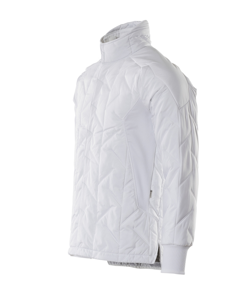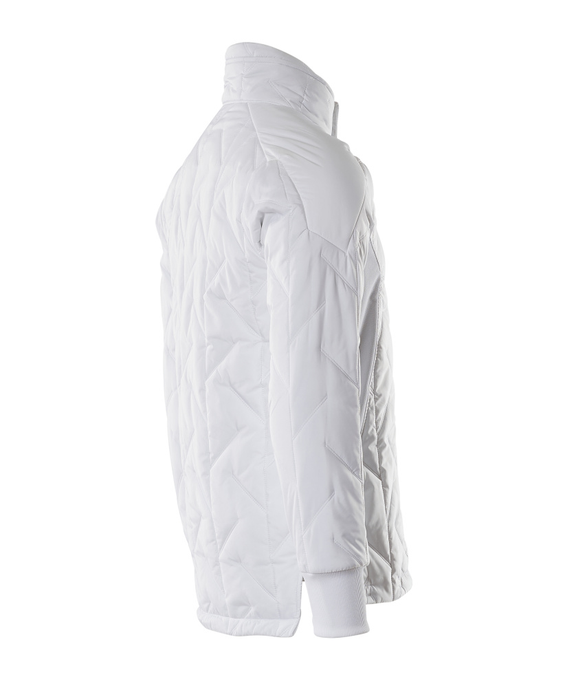 Déperlant(e). Certaines parties du vêtement sont en tissu stretch. Col montant. Col légèrement incurvé fermant près du cou pour le maintenir bien au chaud. Poignets en maille côtelée. Fentes sur les côtés. Fermetures avec boutons-pression non visibles/recouverts. Boutons-pression métalliques. Emplacements pour marquage du vêtement, puce HF et puce UHF. Marquage de couleur pour chaque taille. Le produit est résistant au lavage industriel.