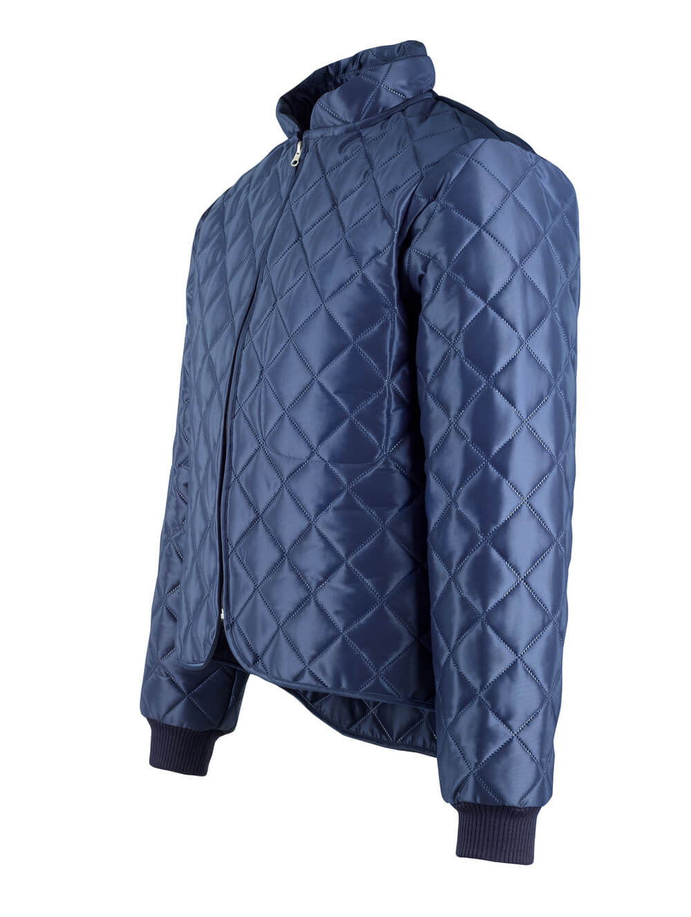 Polyester soudé par ultrasons et isolé avec de la ouate de polyester. Col légèrement incurvé avec intérieur en maille côtelée jusqu'au cou pour garder au chaud. Zip intégral. Dos long. Poignets en maille côtelée. Poche poitrine intérieure.