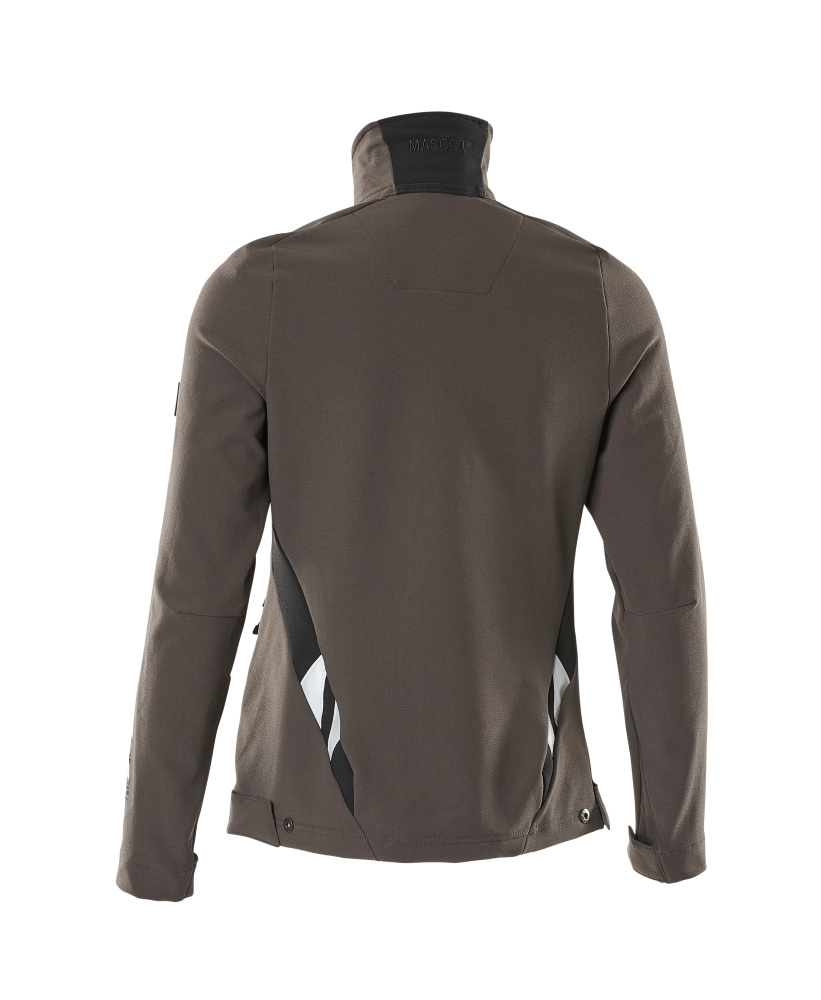 Coupe femme. Offre une finition hydrofuge. Tissu ultimate stretch de poids léger et résistant. Fermeture zippée et rabat coupe-vent à l'intérieur. Poche poitrine zippée. Porte-badge amovible. Poches latérales zippées. Boutons-pression pour resserrer les poignets et le bord inférieur. Avec motifs imprimés et bandes rétroréfléchissantes.